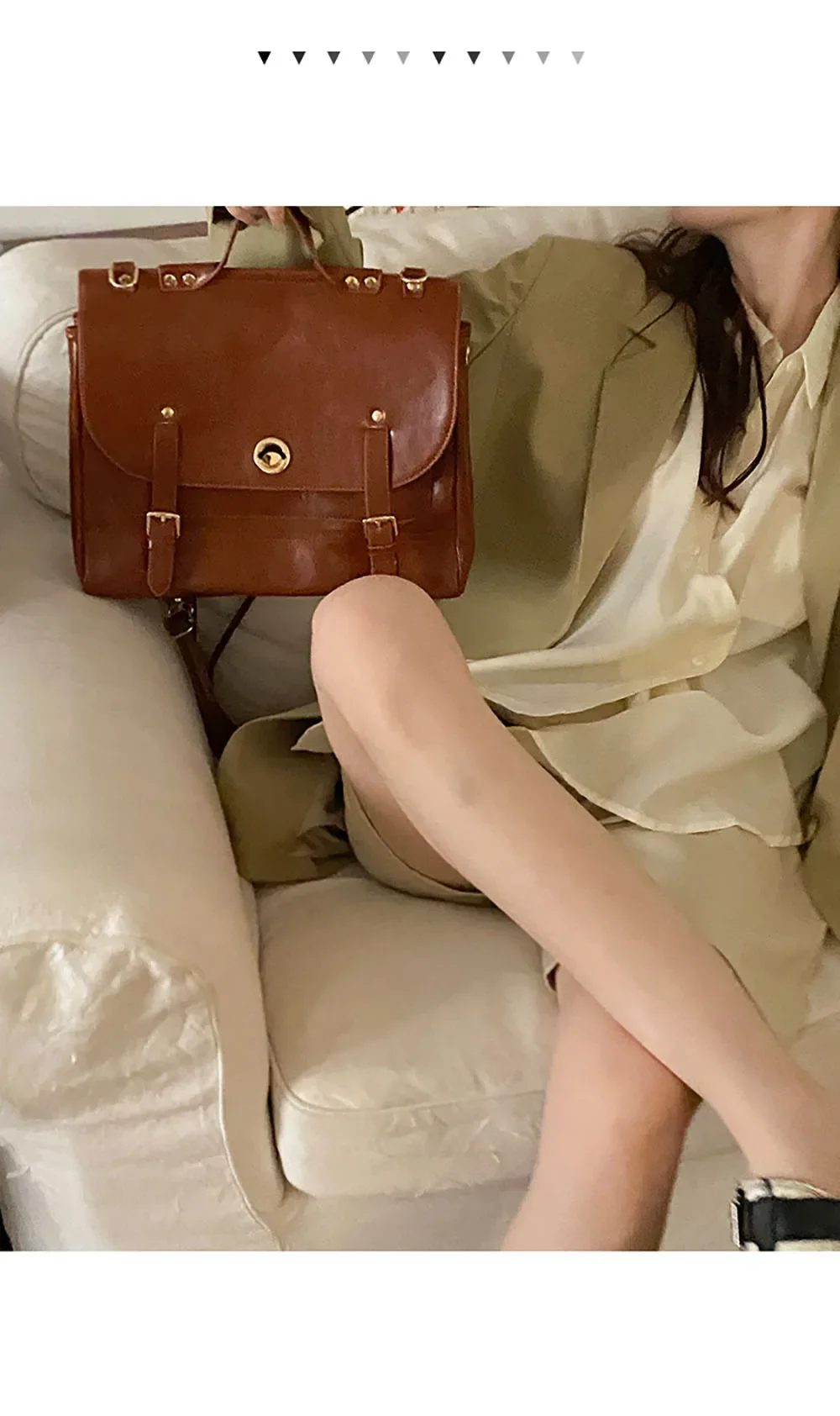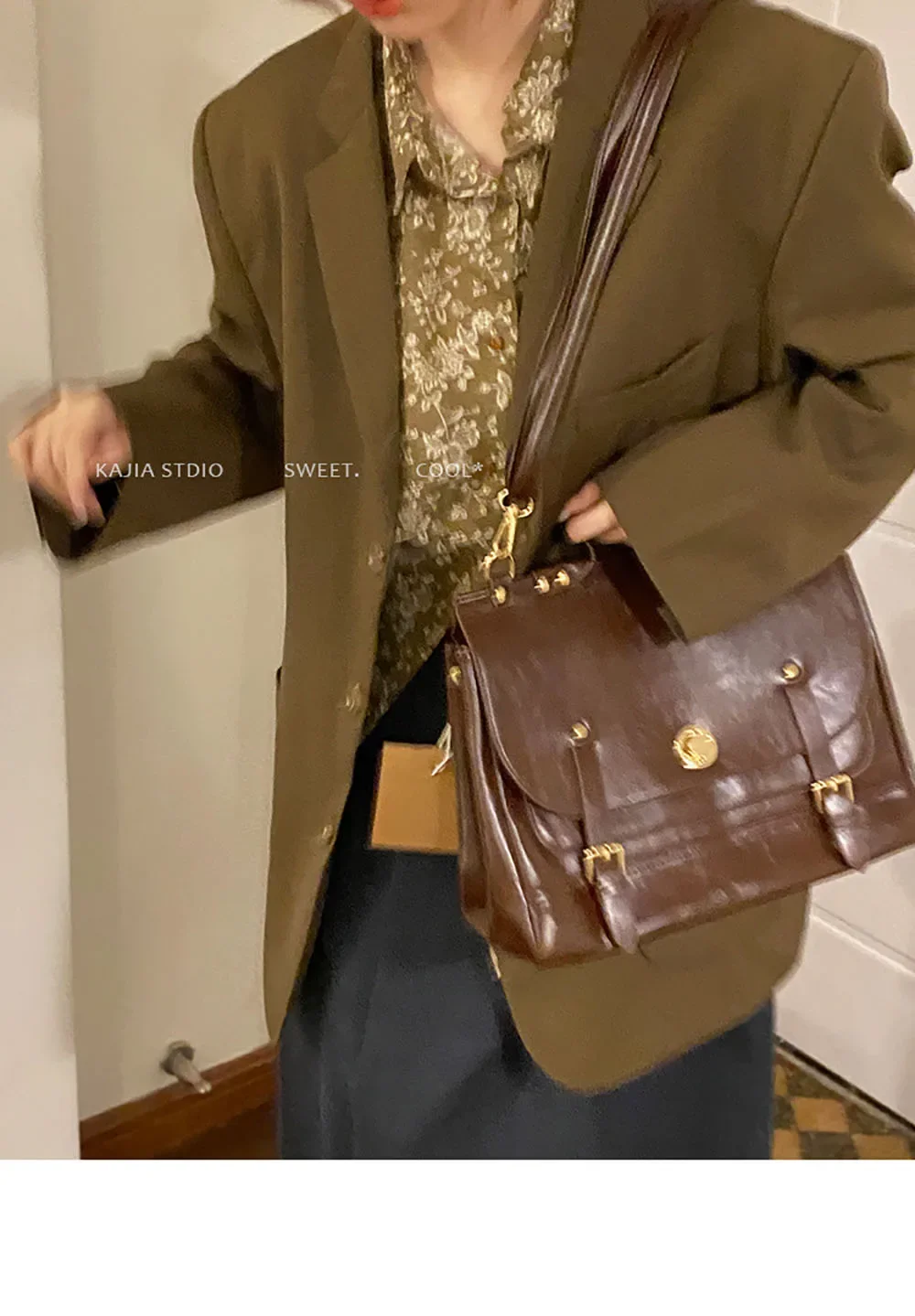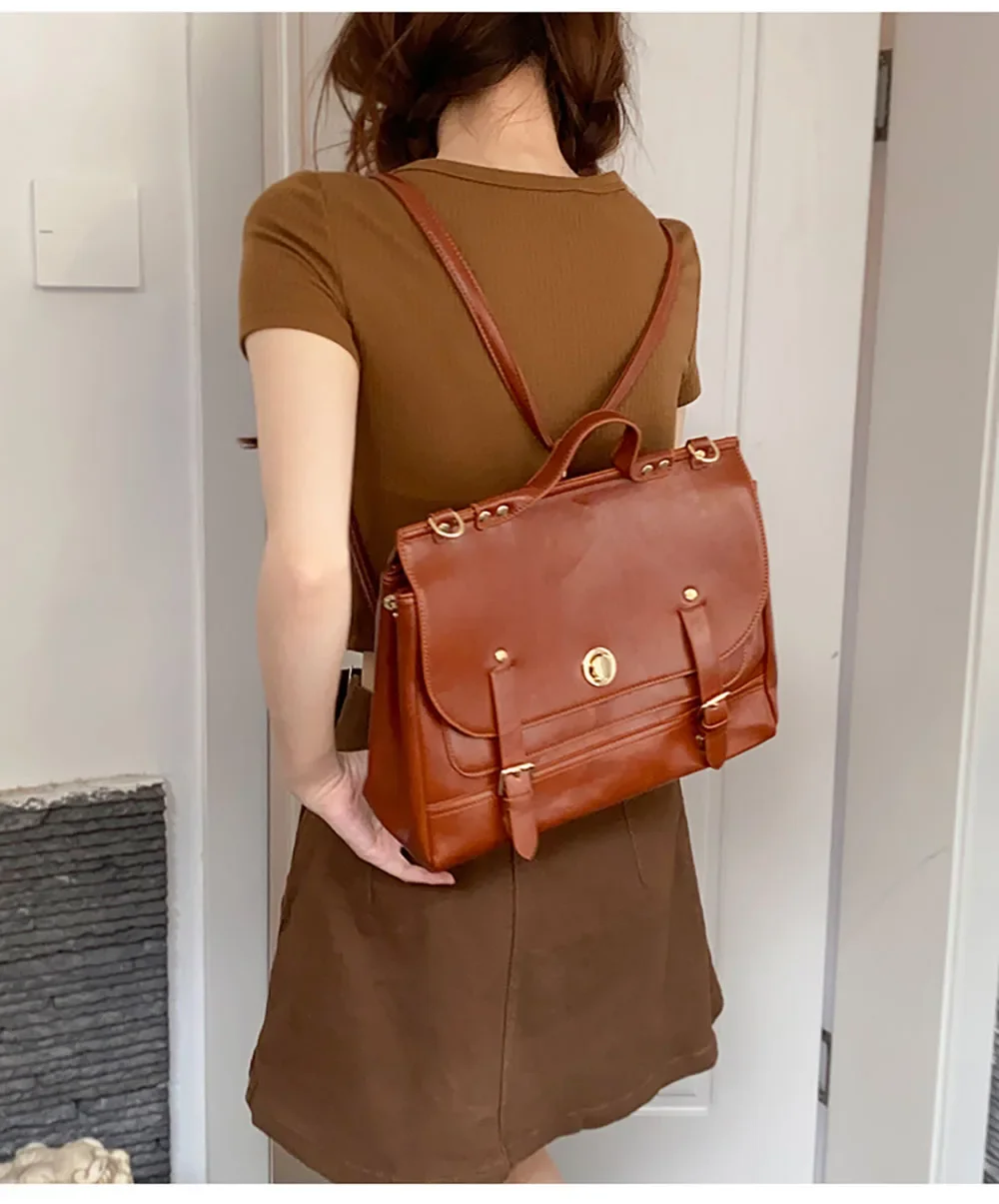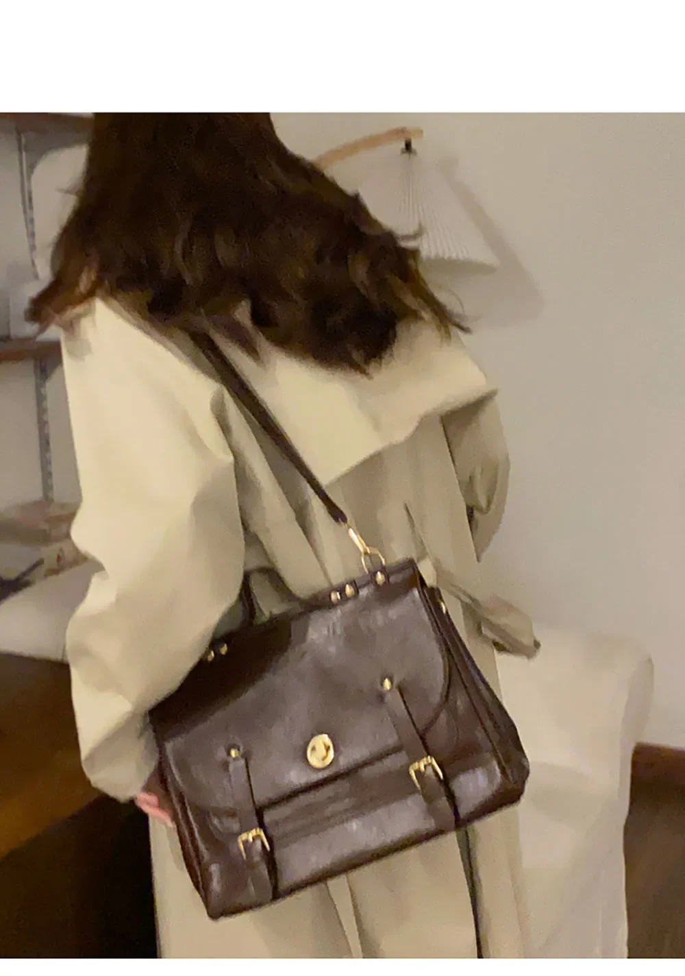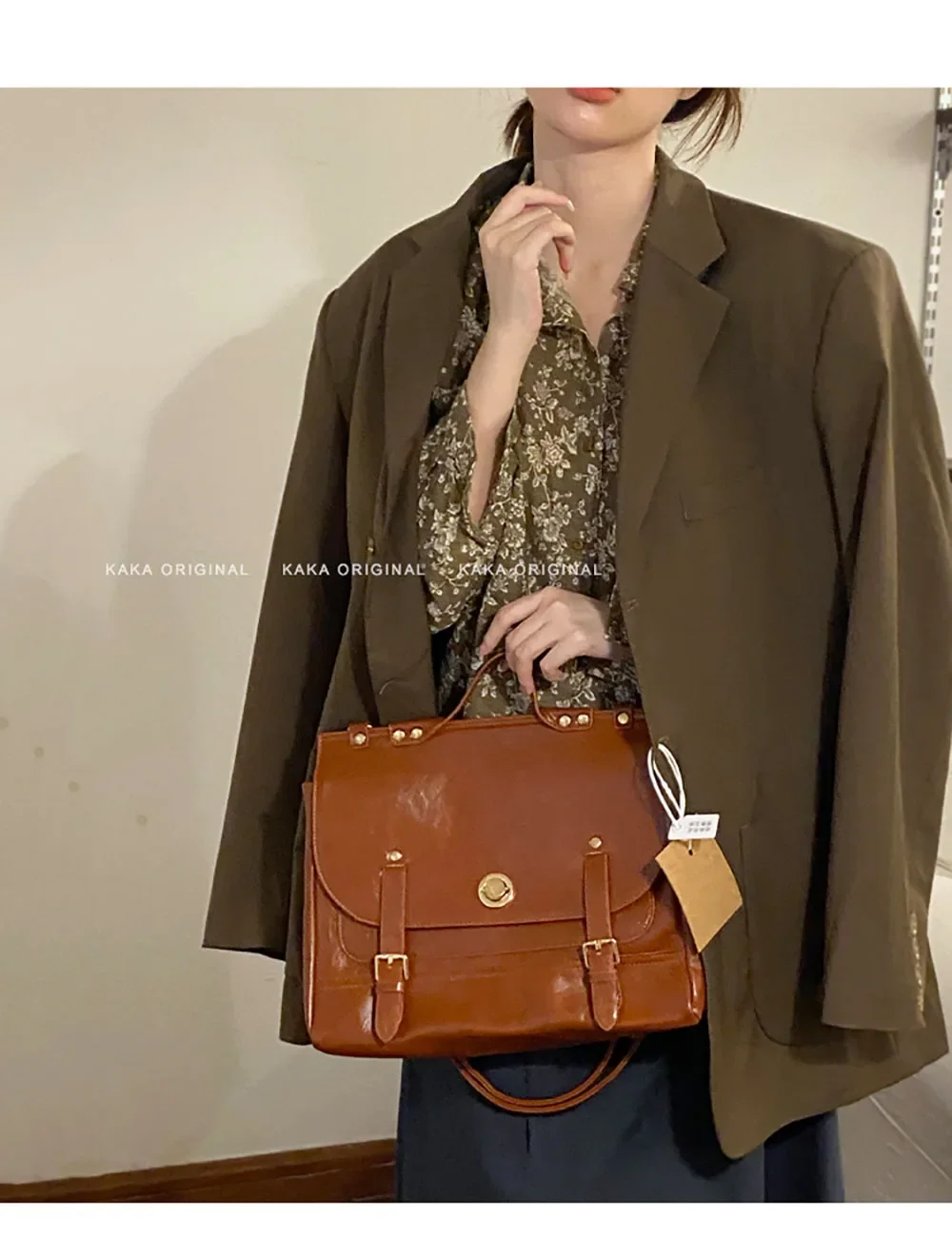 British Style Retro Postman Bag Woman New Fashion Classical Korean Version Briefcase Large Capacity Backpack PU Leather Textured