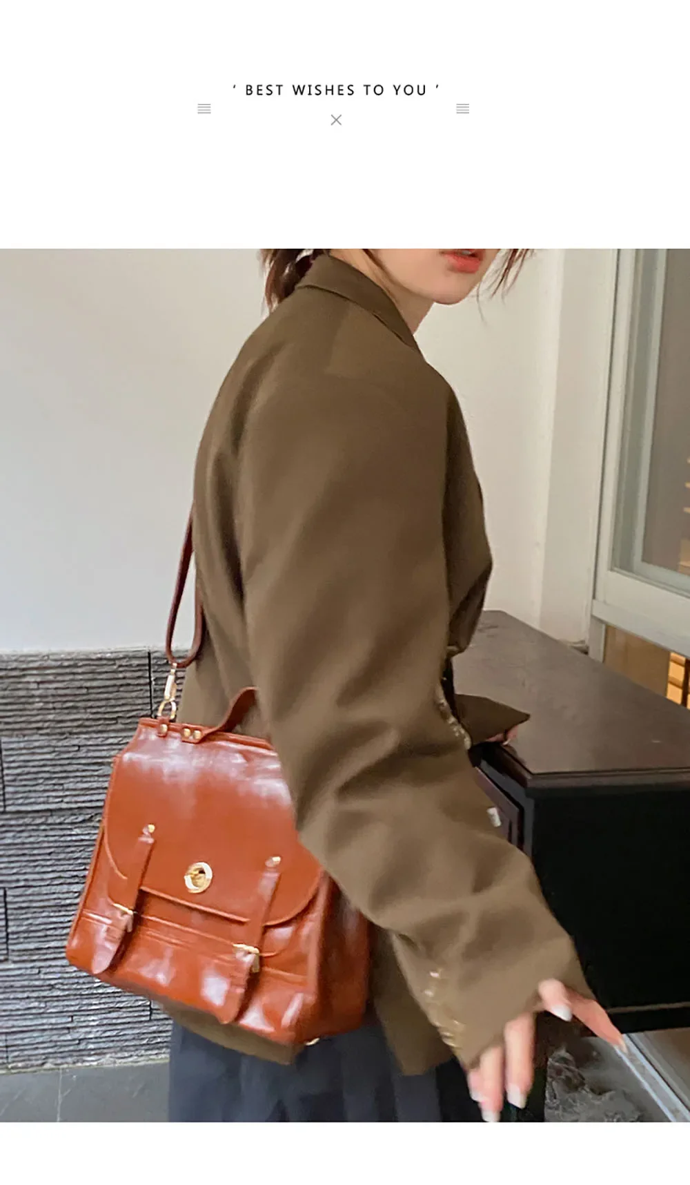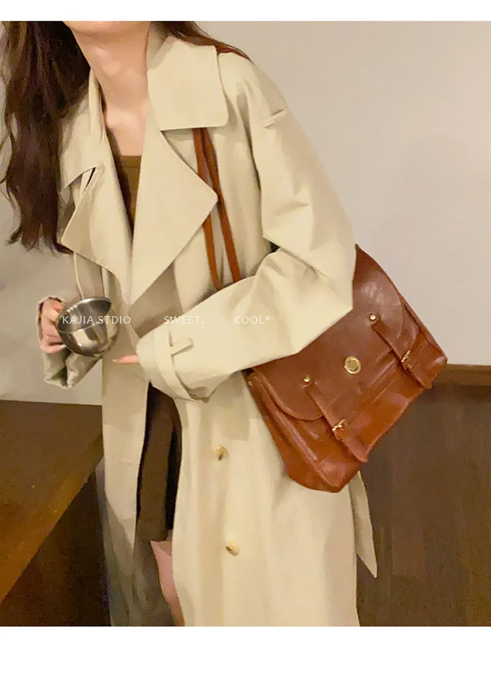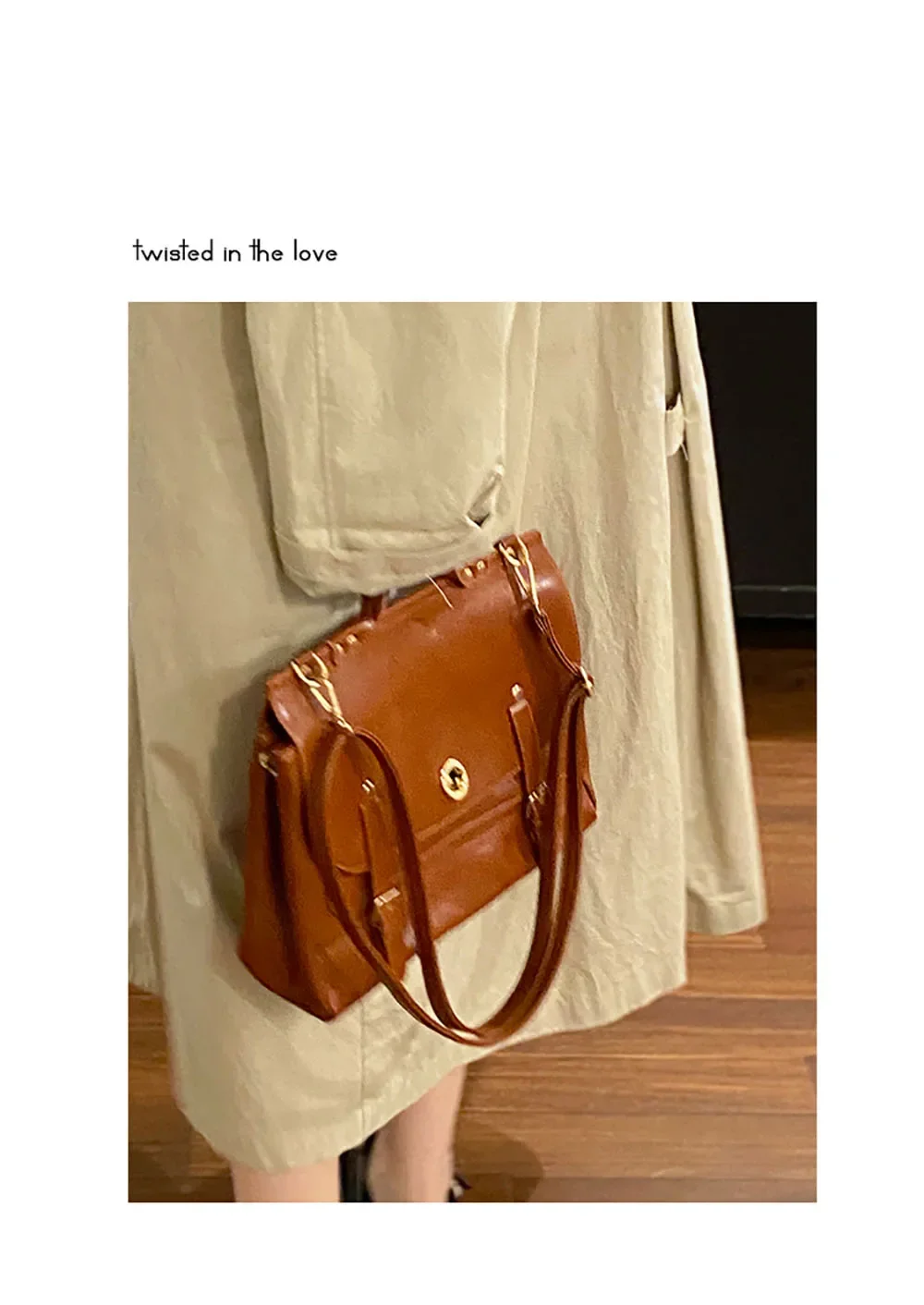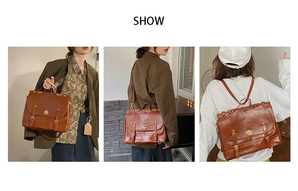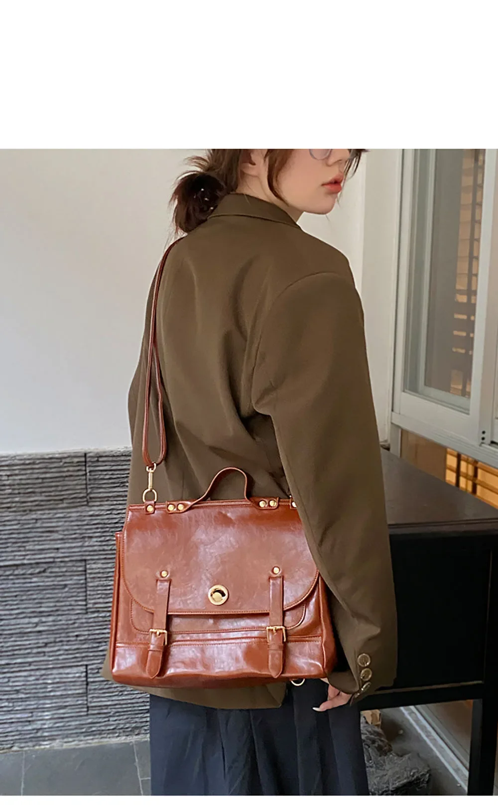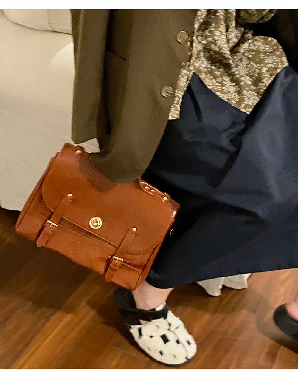 British Style Retro Postman Bag Woman New Fashion Classical Korean Version Briefcase Large Capacity Backpack PU Leather Textured