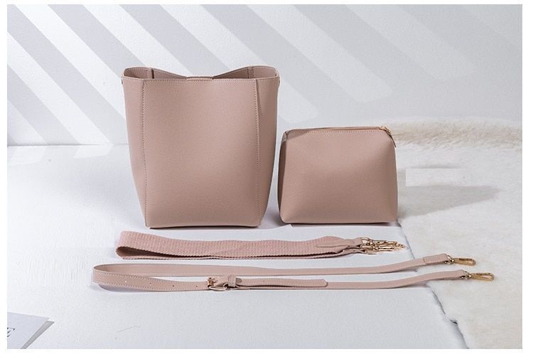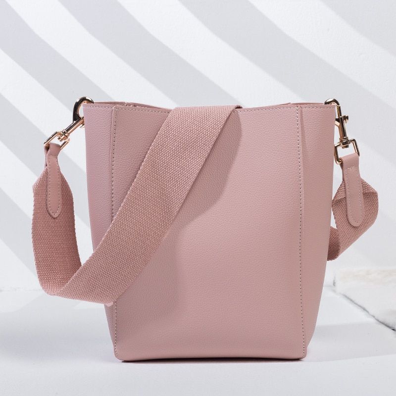 Bucket Shoulder Bag Women Handbags Synthetic Leather Messenger Bags Wide Strap