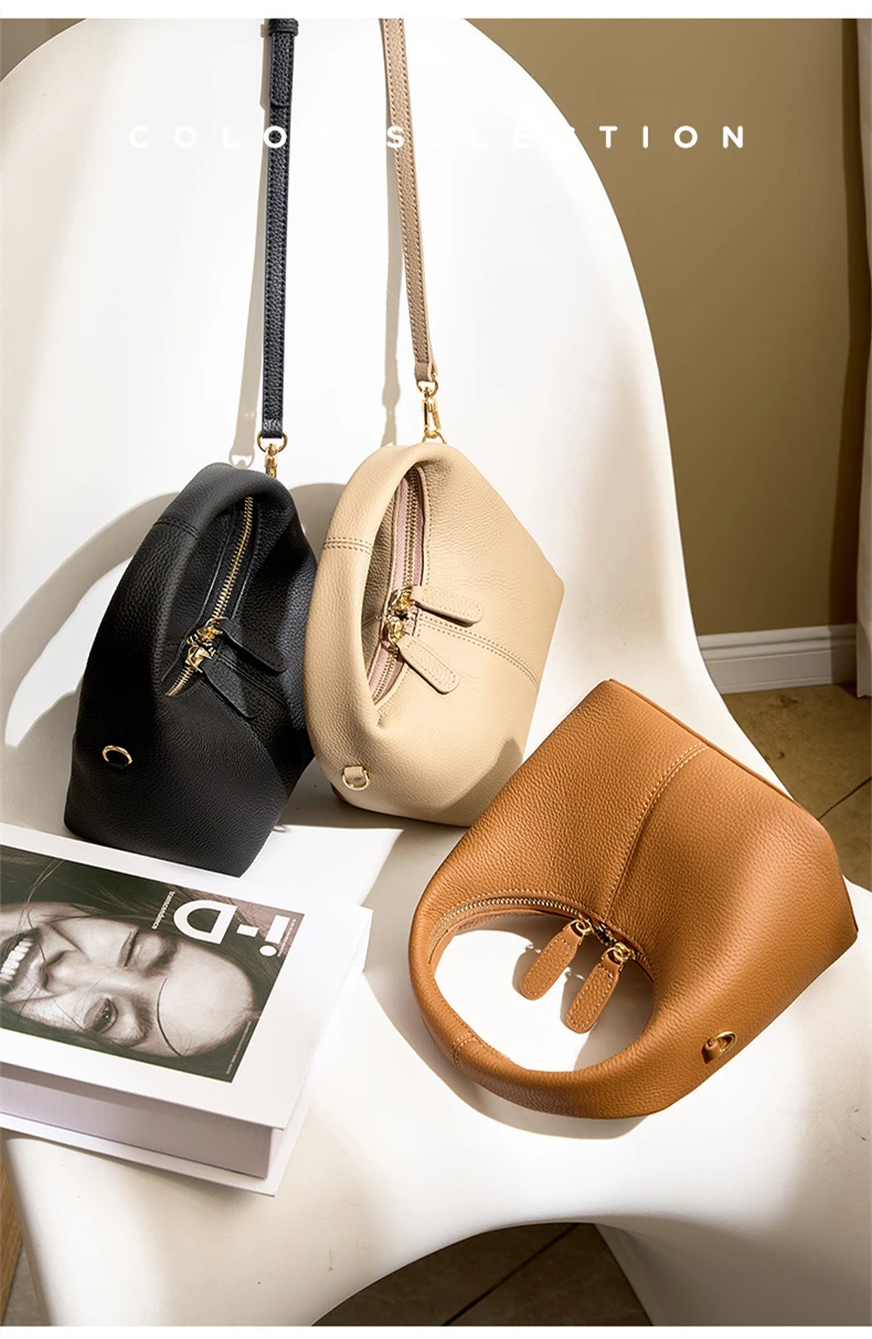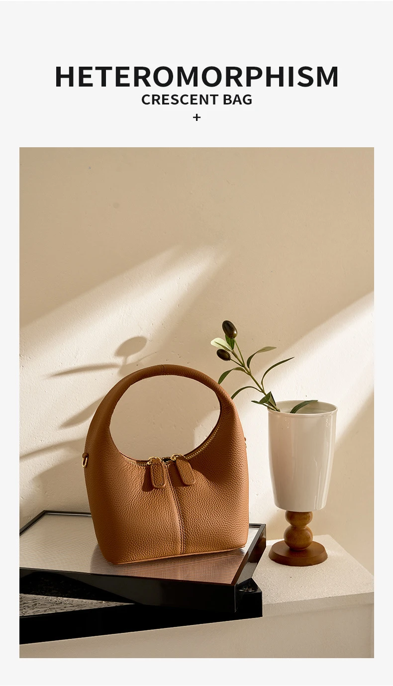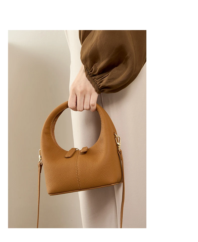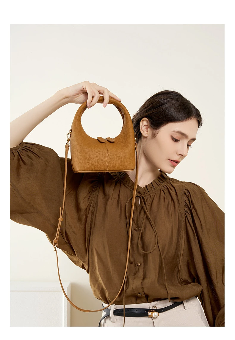 Burminsa Cowhide Genuine Leather Half Moon Small Shoulder Crossbody Bags For Women 2024 Trend Design Ladies Handbags And Purses
