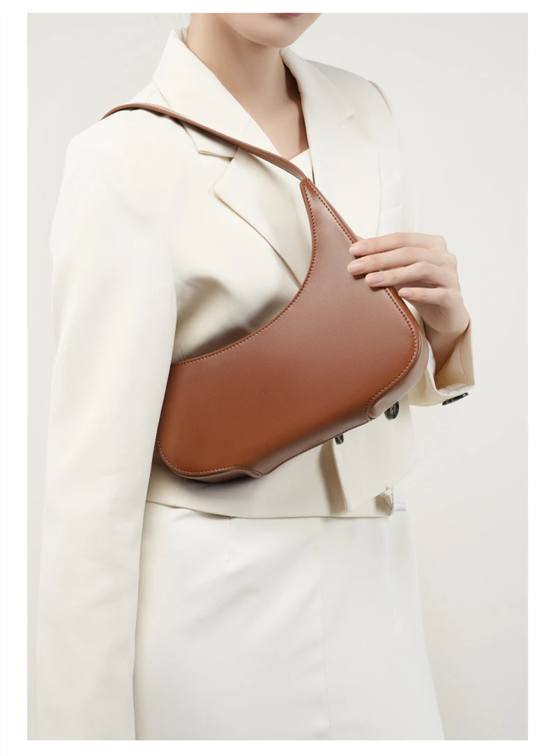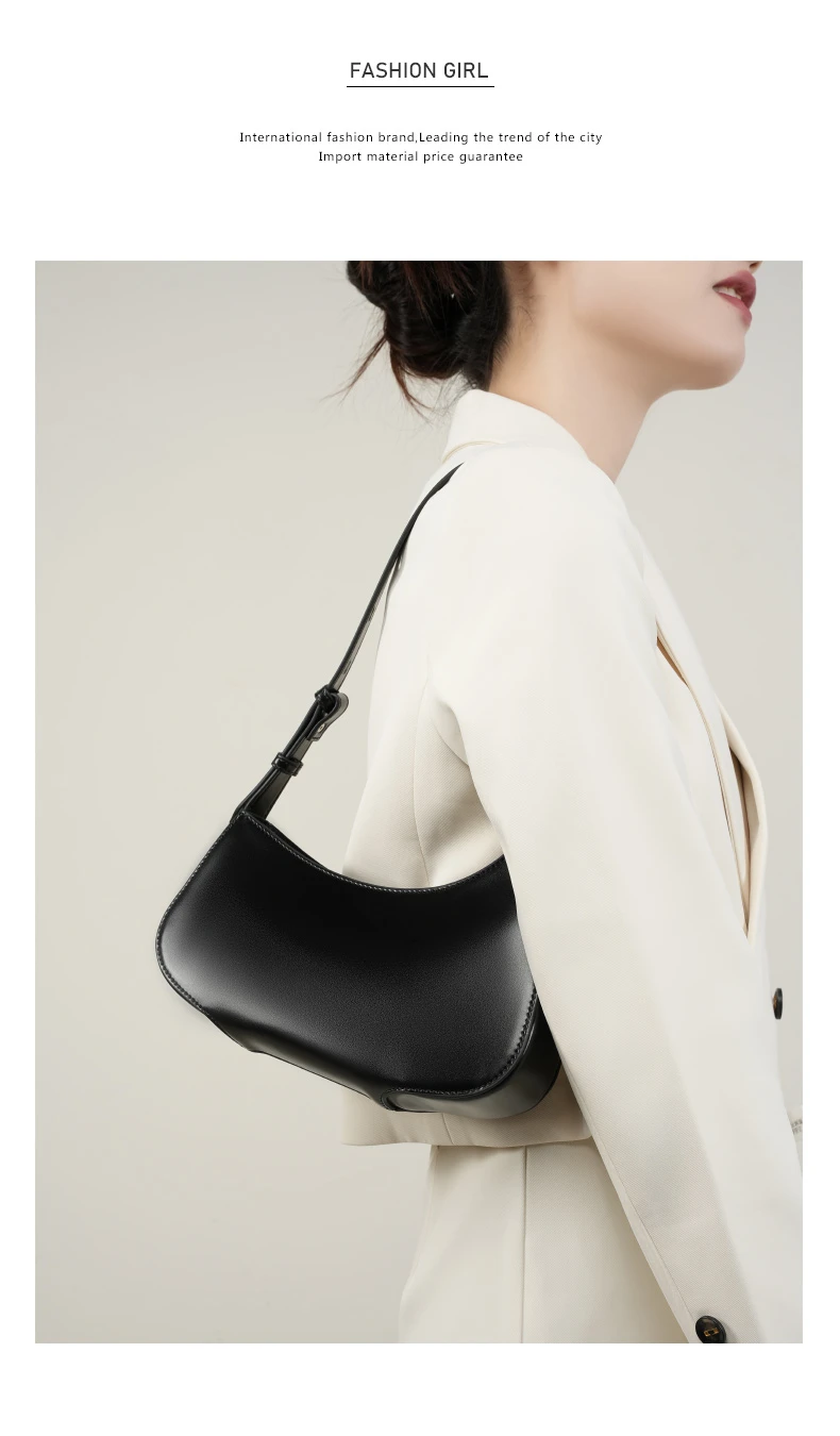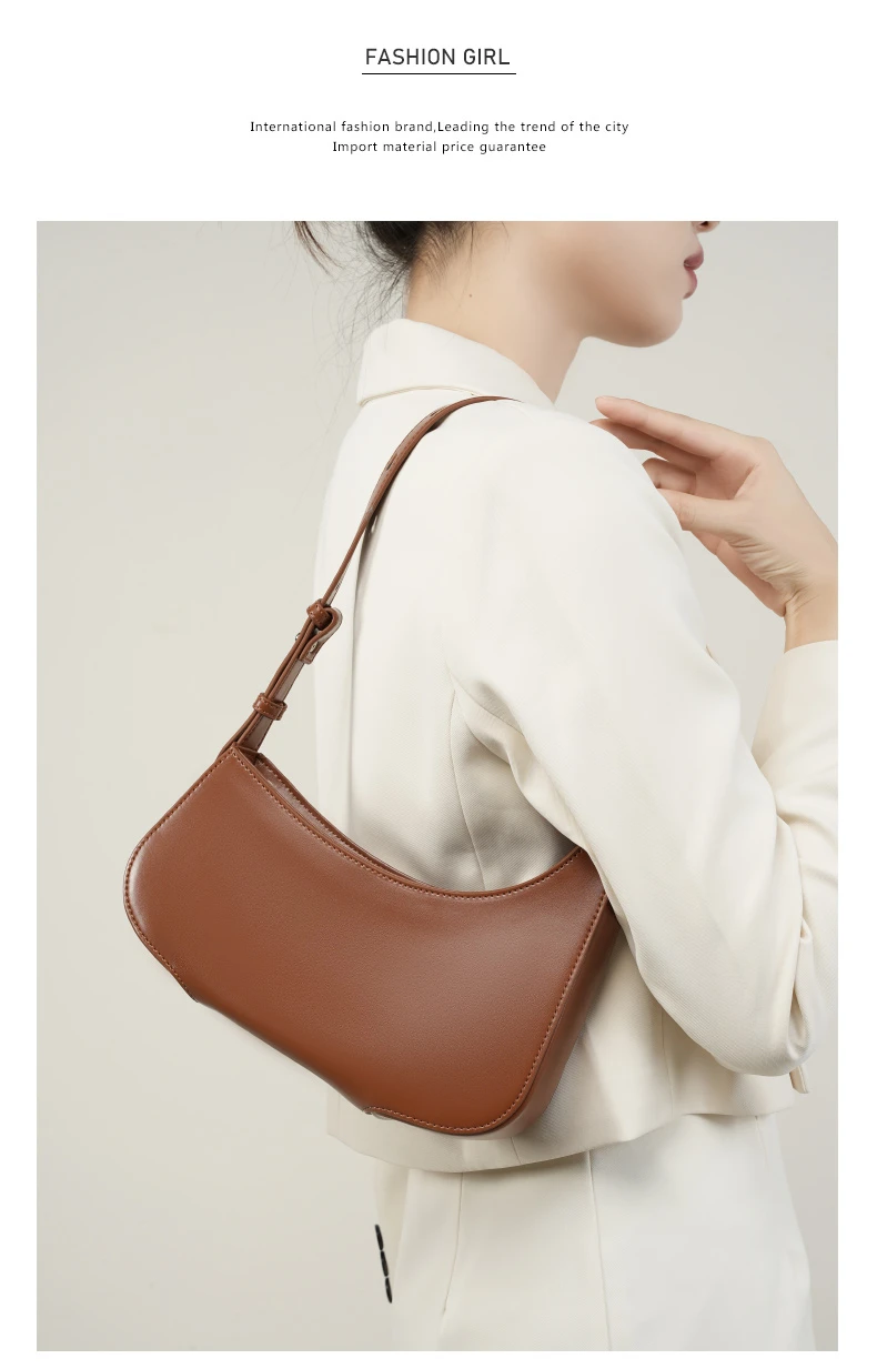 Burminsa Cowhide Genuine Leather Underarm Shoulder Bags For Women New 2024 Trend Designer Half Moon Ladies Handbags And Purses