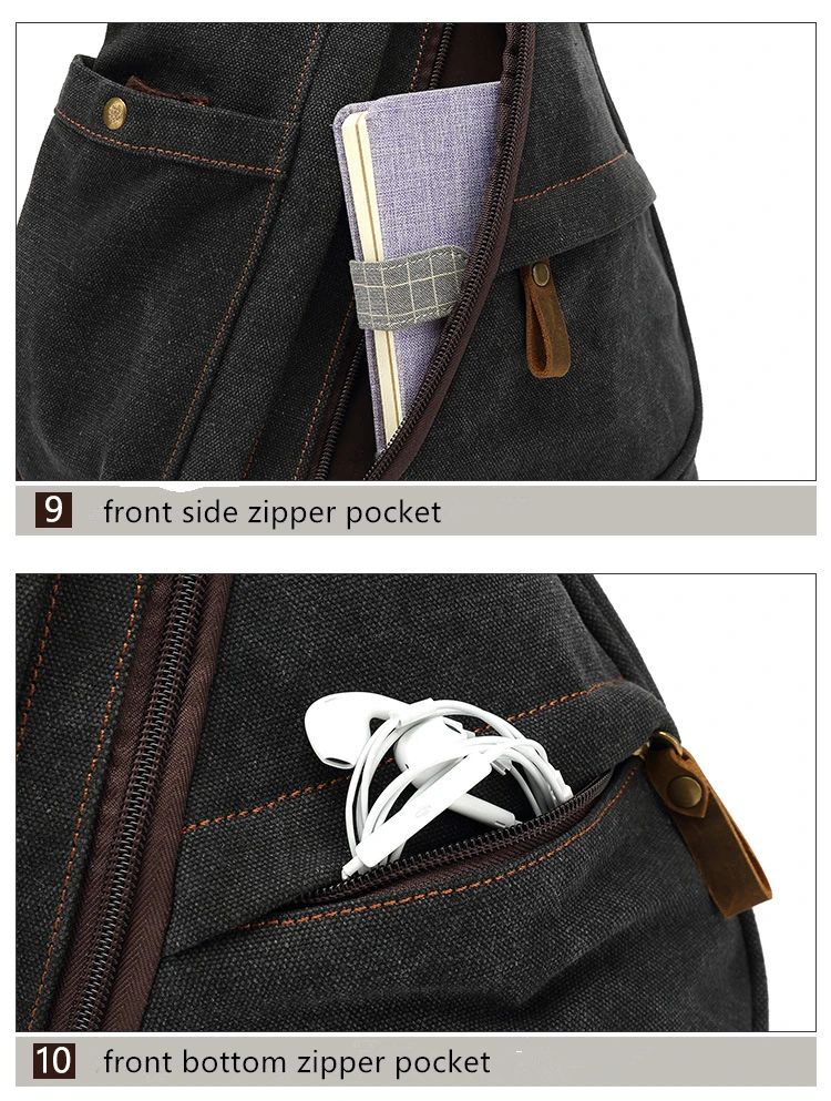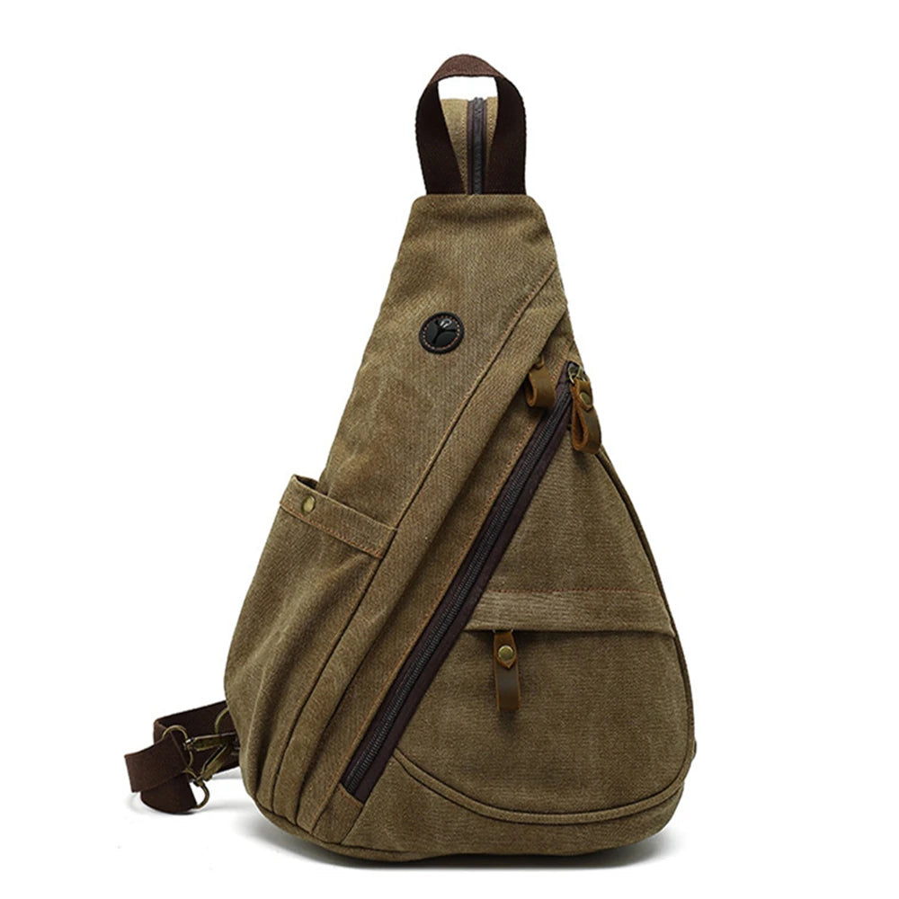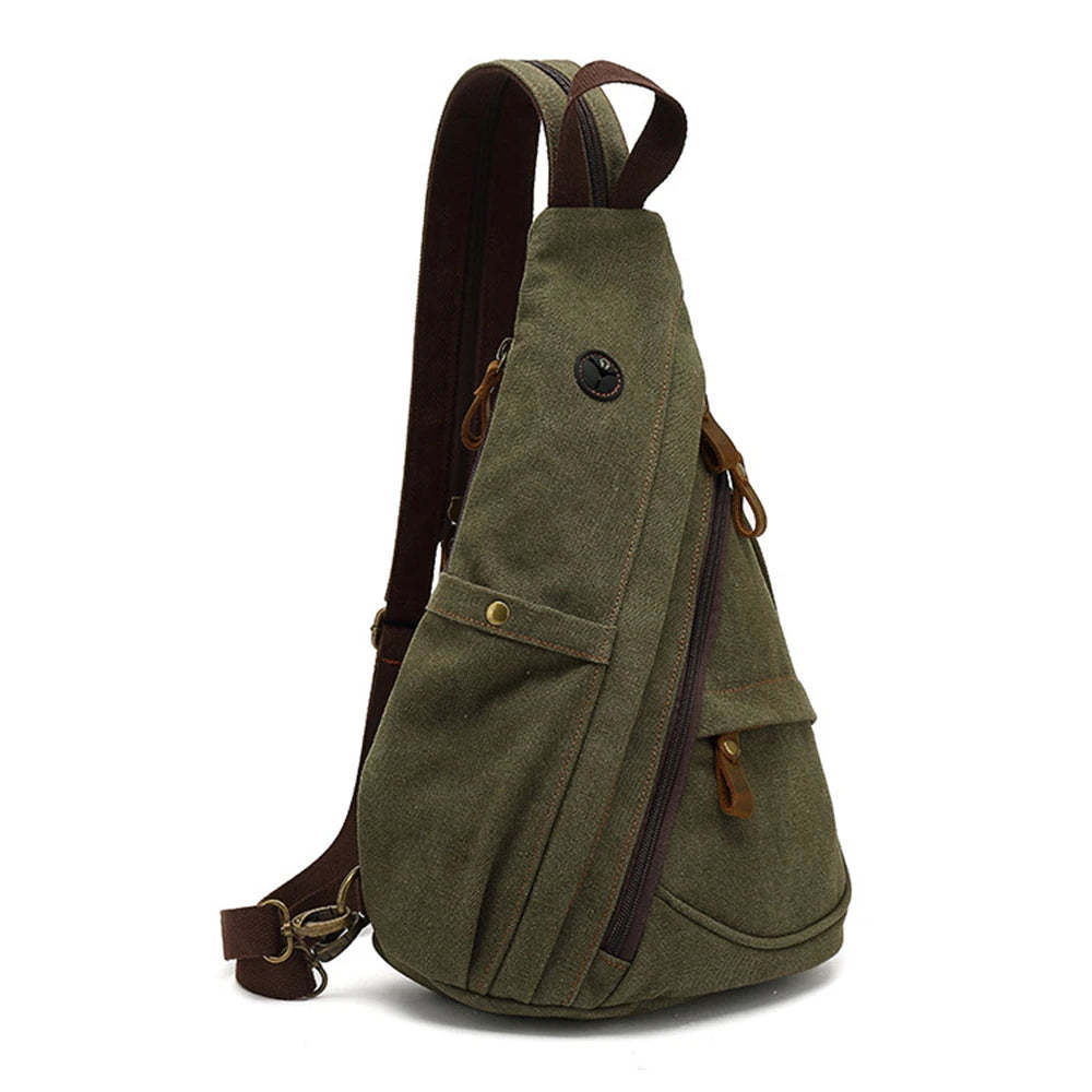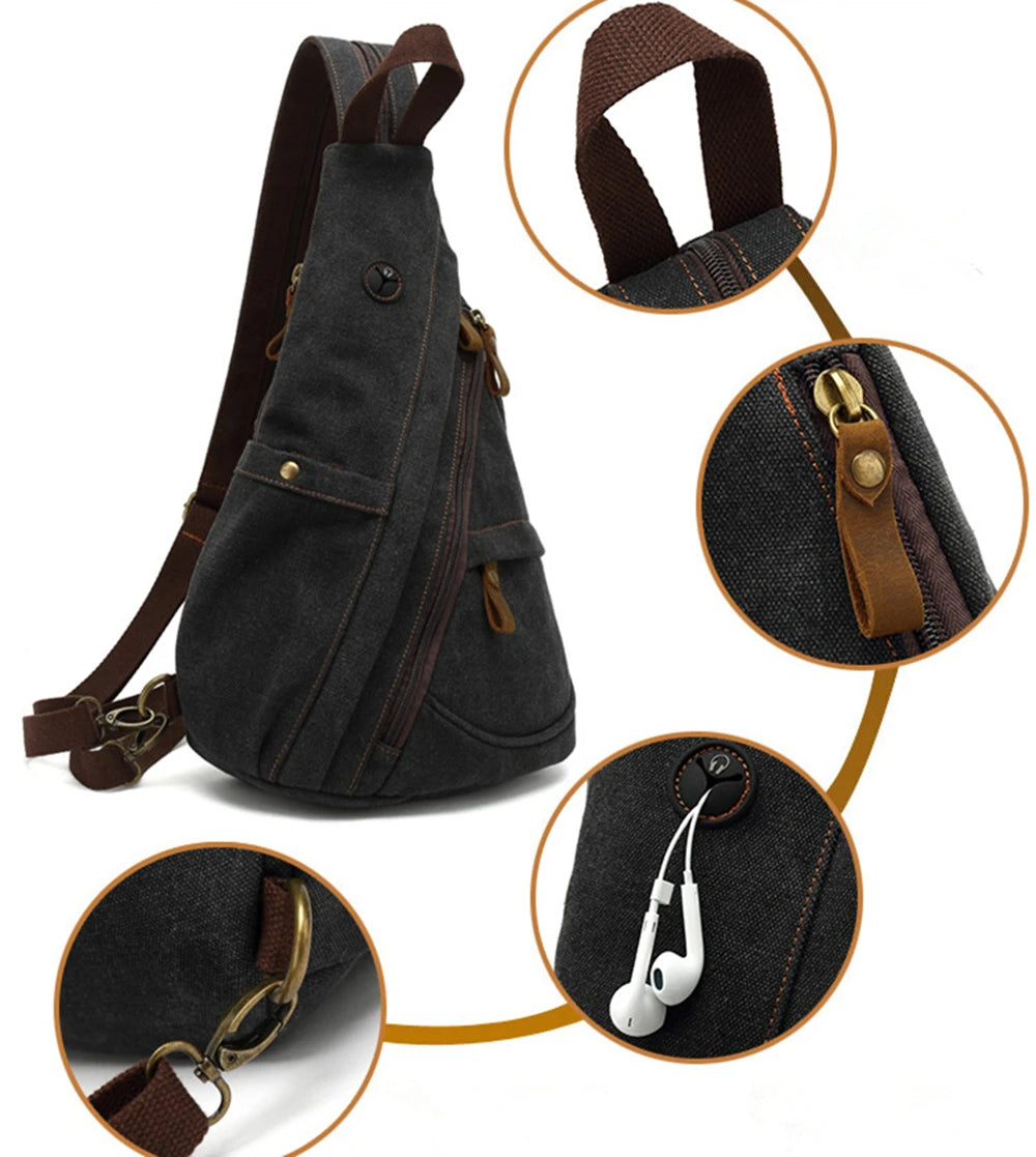 Canvas Sling Chest Bags With Earphone Port Men's Cross-Body Causal Messenger Day Pack Male Women's Shoulder Satchel Backpack