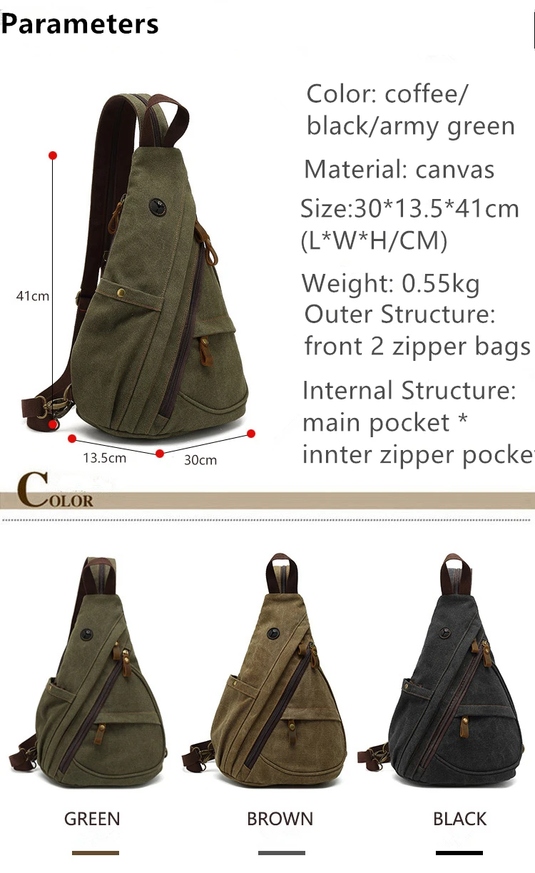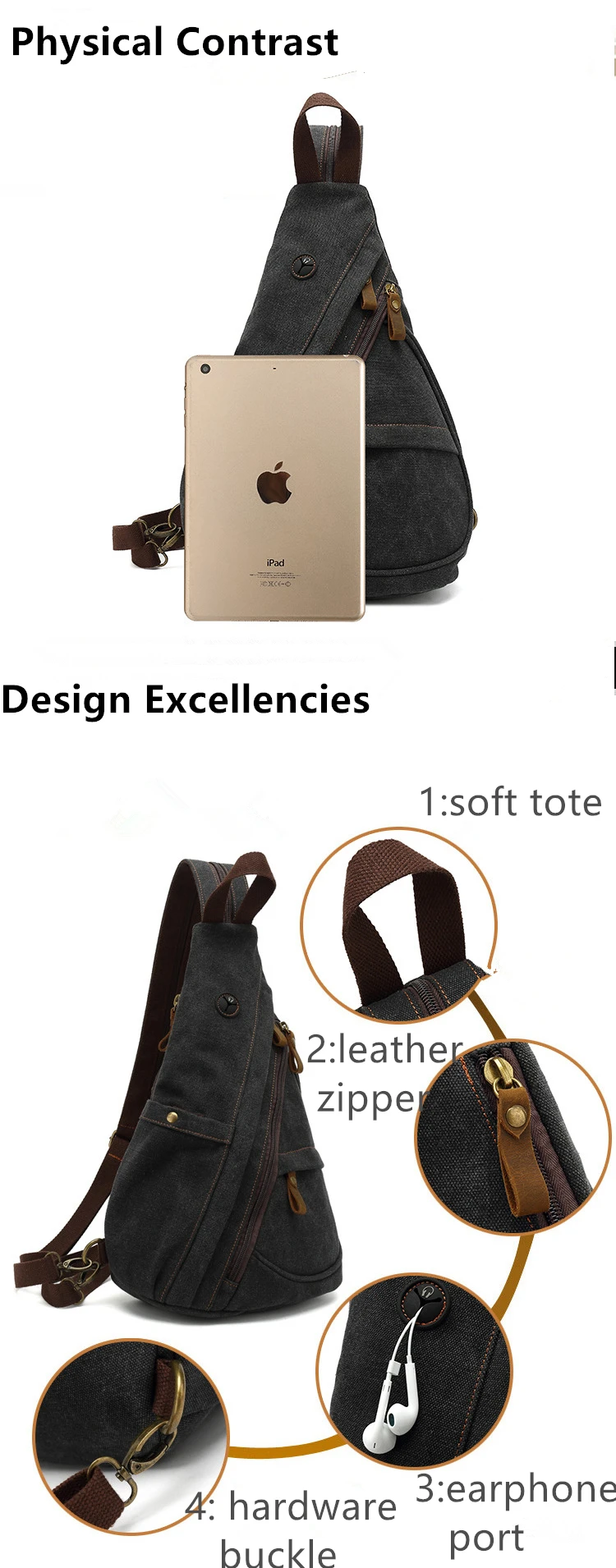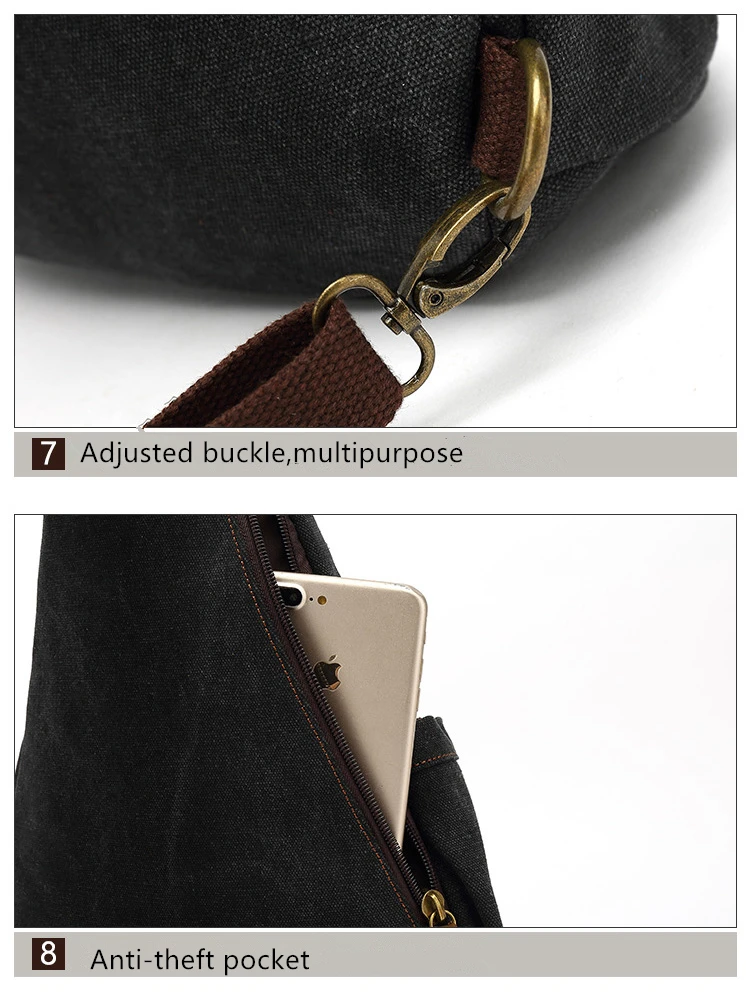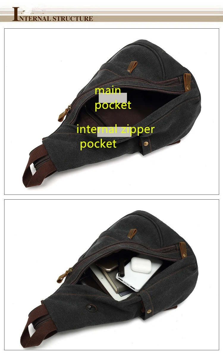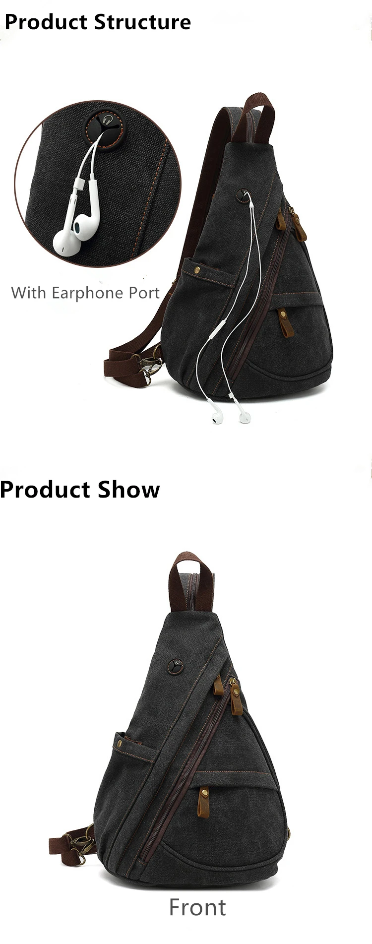 Canvas Sling Chest Bags With Earphone Port Men's Cross-Body Causal Messenger Day Pack Male Women's Shoulder Satchel Backpack