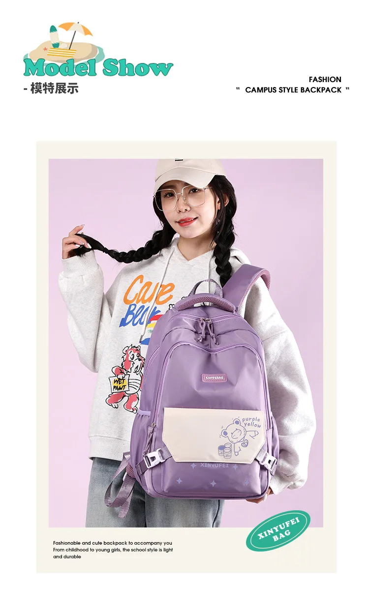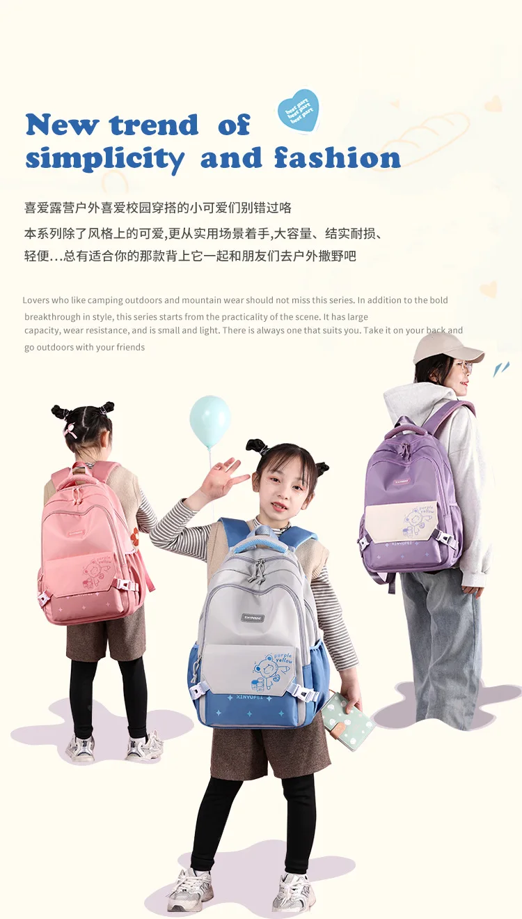 Cartoon Bear School Bags Large Travel Backpacks Primary and Secondary Students Backpacks for Girls Class Bags Women Kawaii Pack