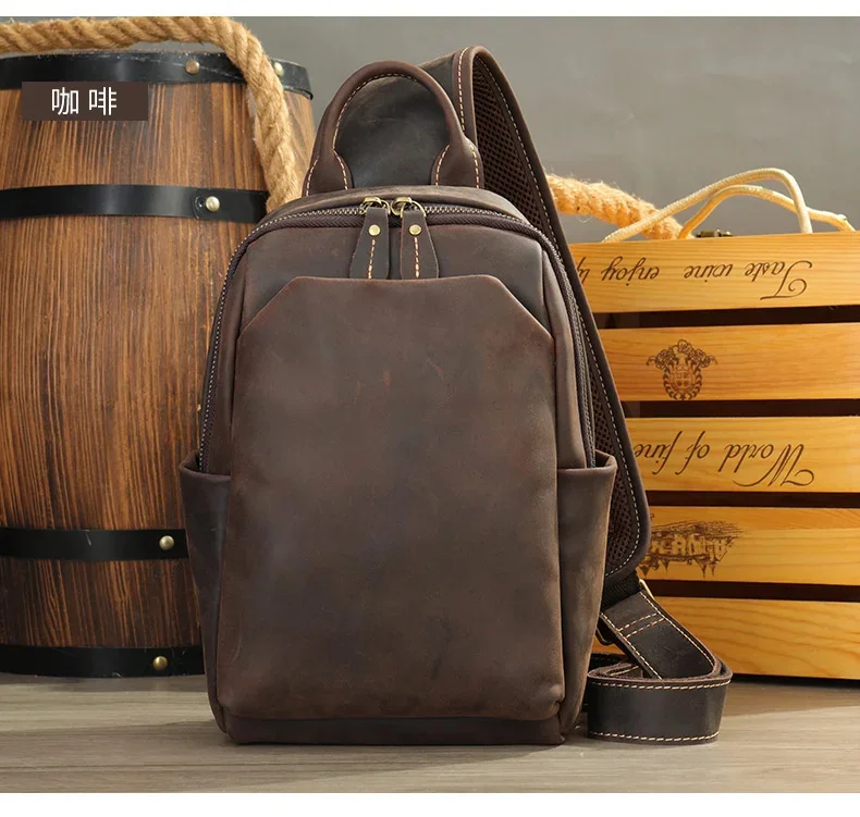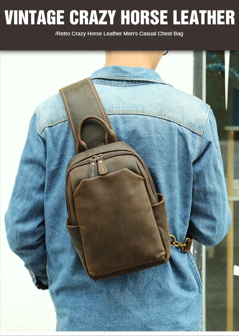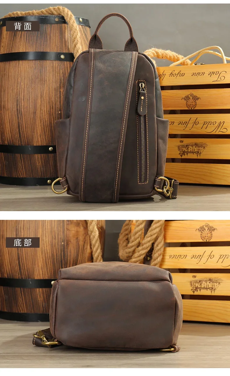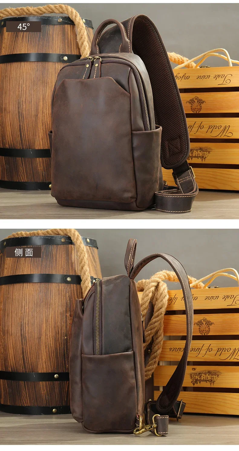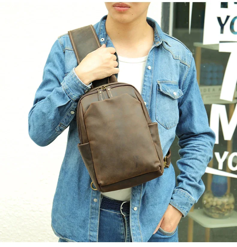 Casual Crazy Horse Leather Chest Bag