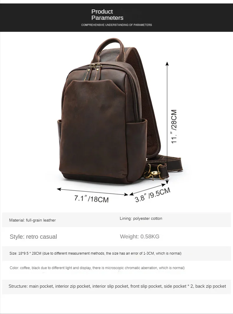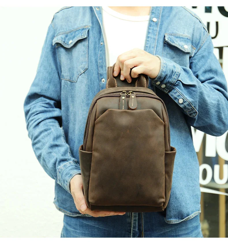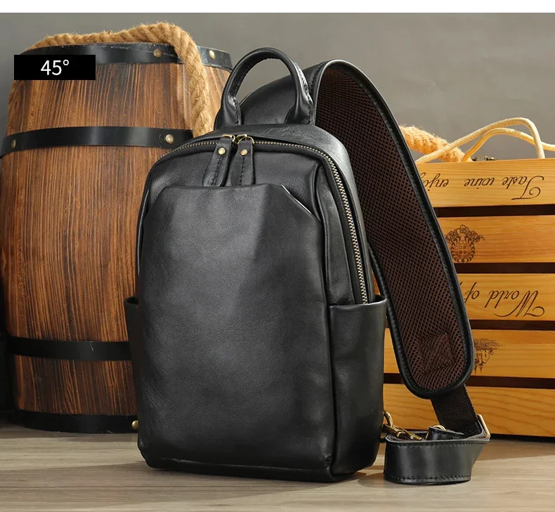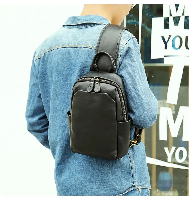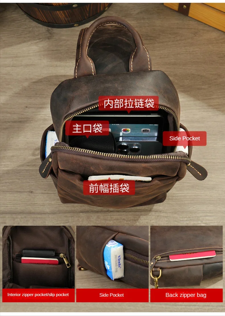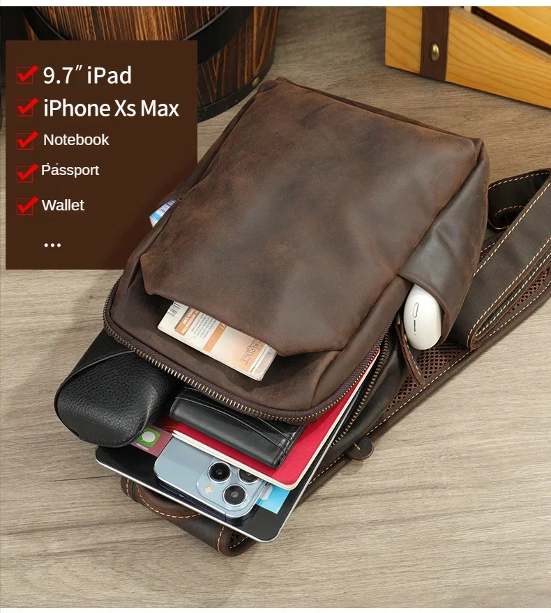 Casual Crazy Horse Leather Chest Bag