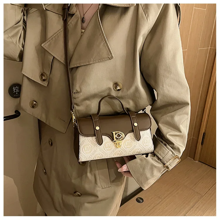Casual Hundred Girls Shoulder Girl Bag Retro Color Collision Ladies Crossbody Baguette Bag Fashion Embossed Girls Tote Small Squ