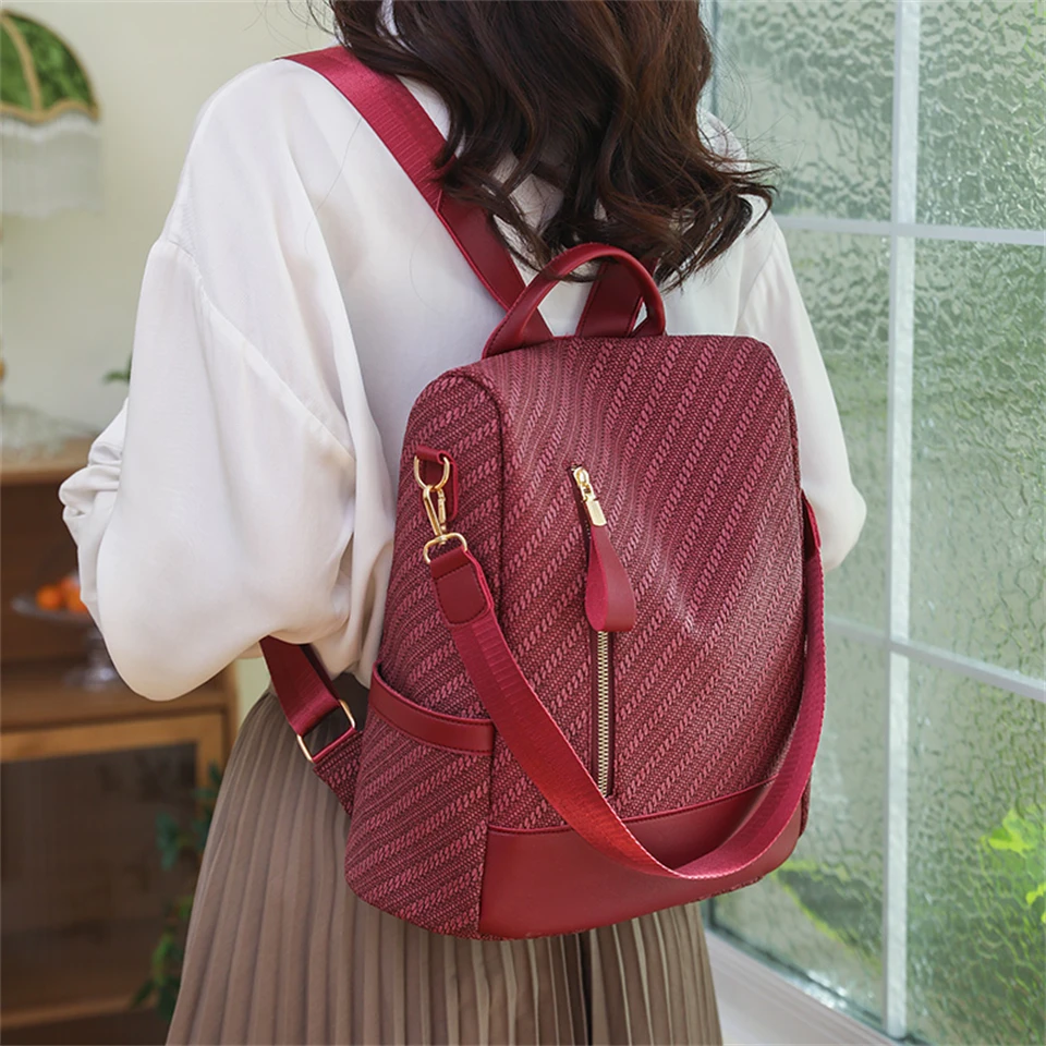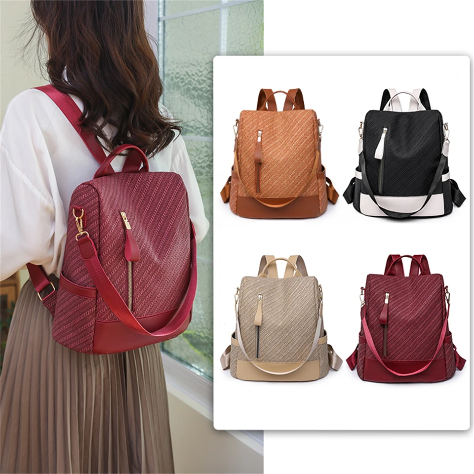 Casual Leather Women Backpacks Ladies Bagpack Large Capacity School BookBags for Teenager Girl Fashion Travel Rucksack Bookpack