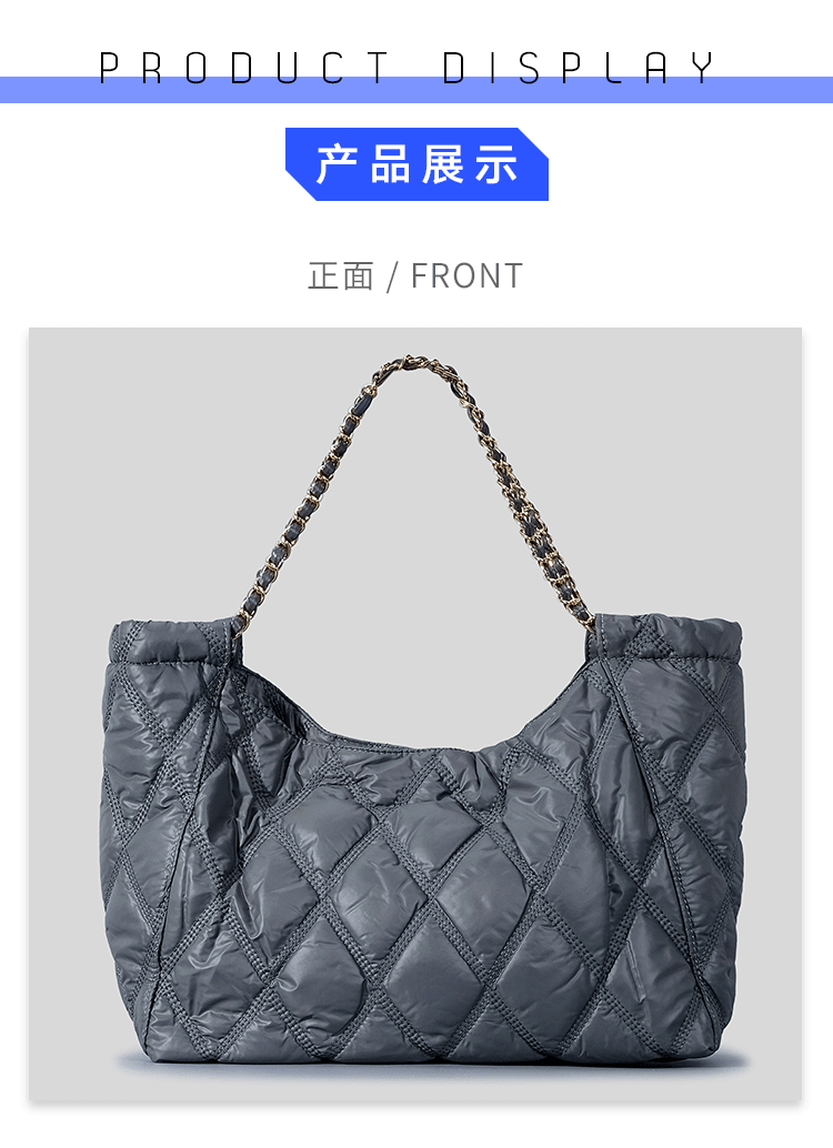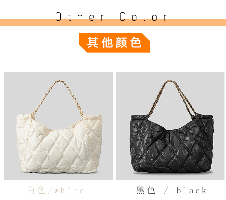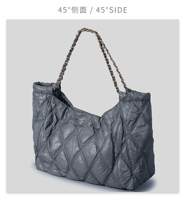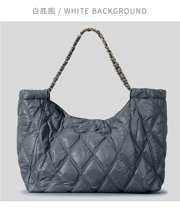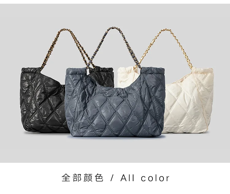 Casual Nylon Lingge Quilted Women Shoulder Bag Designer Padded Lady Handbags Chain Large Capacity Tote Bag Big Shopper Purse2023