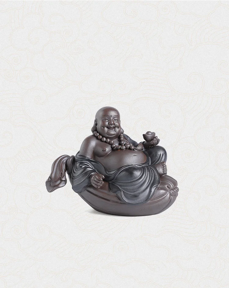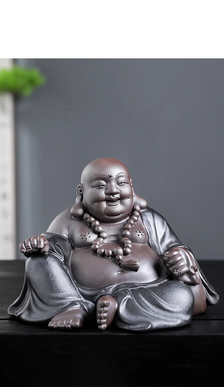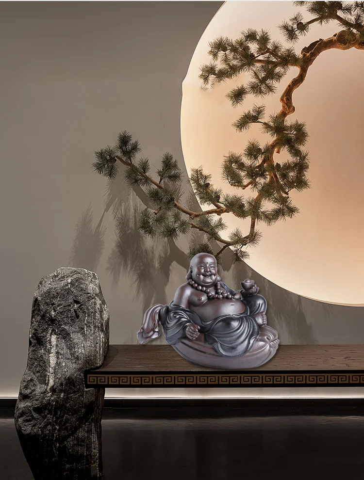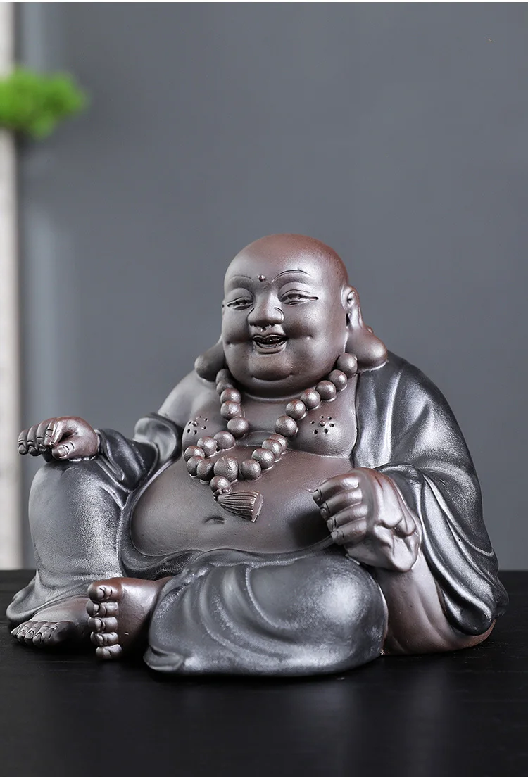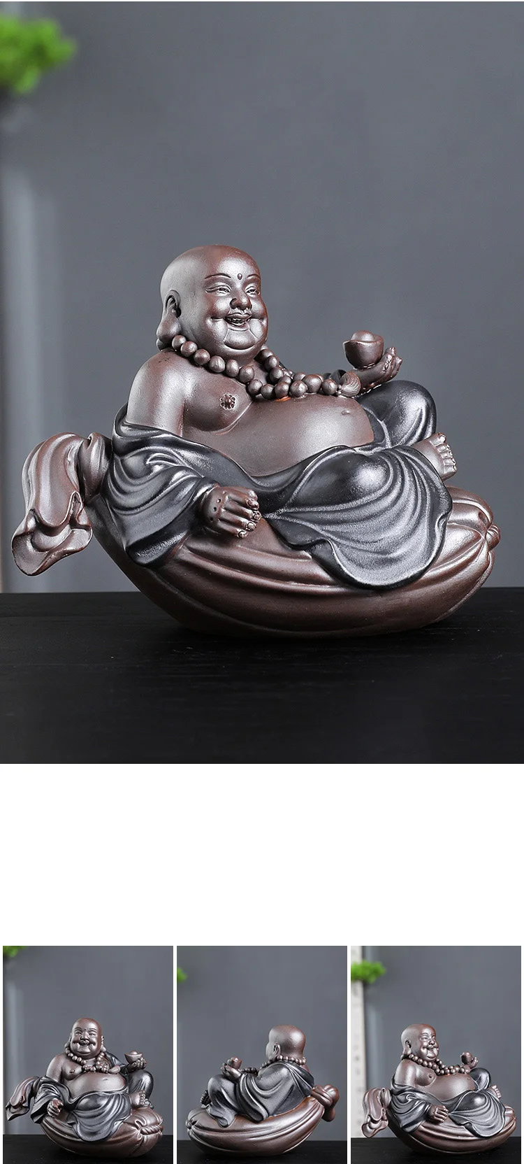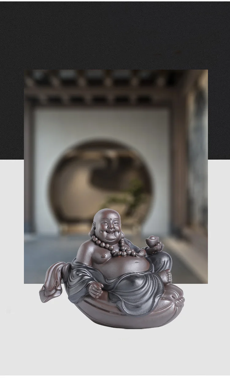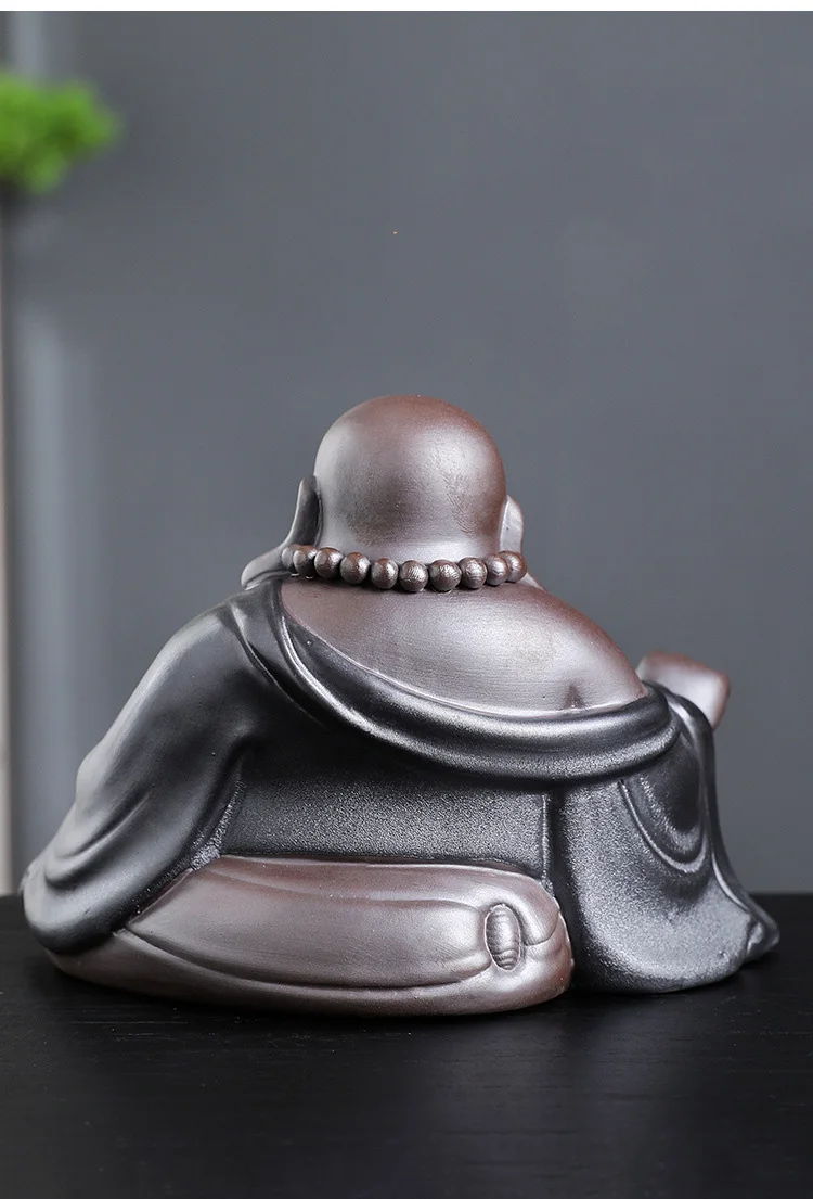 Ceramic Maitreya Figure Statue, Chinese Characteristics Decorative Ornaments Home Room Office Fish Tank Garden Decoration Statue