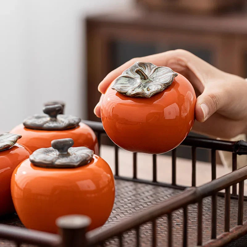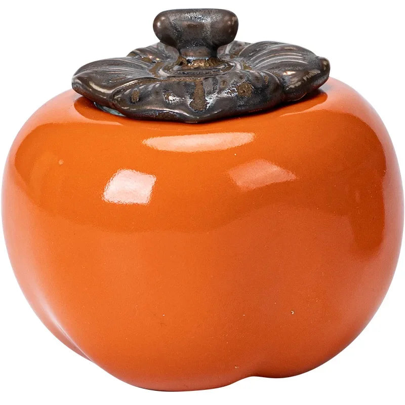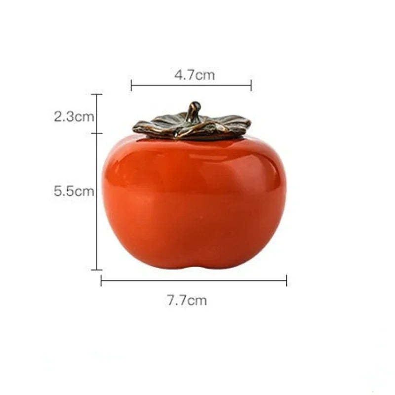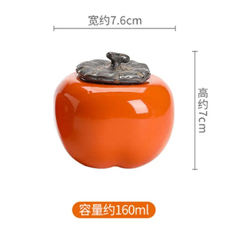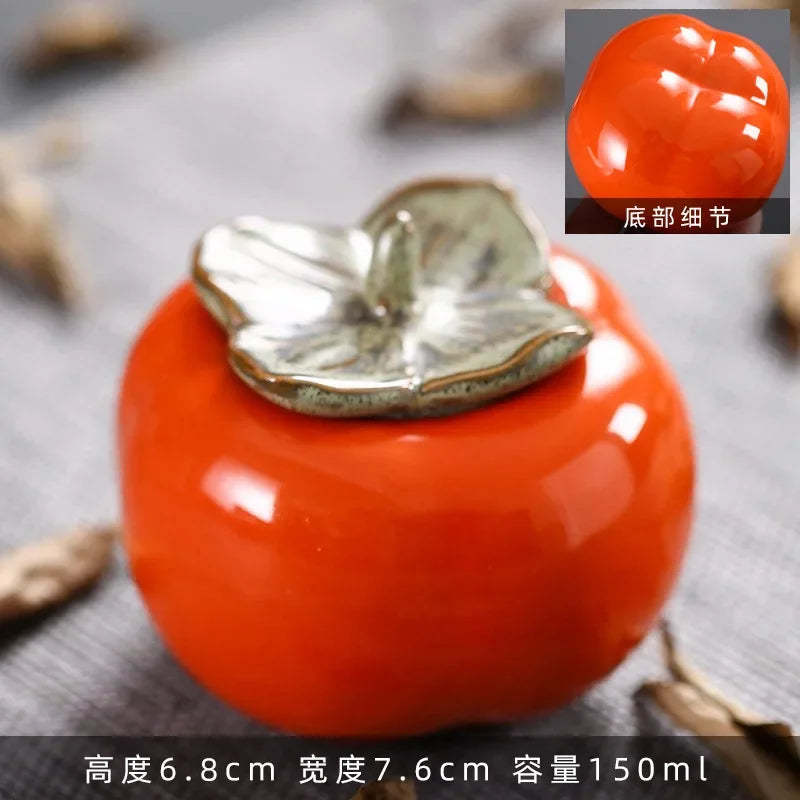 Tea Caddies Persimmon Tea Pot Household Ceramic Spice Storage Tank Pottery Jar Seasoning Container Small Storage Pot Ornament