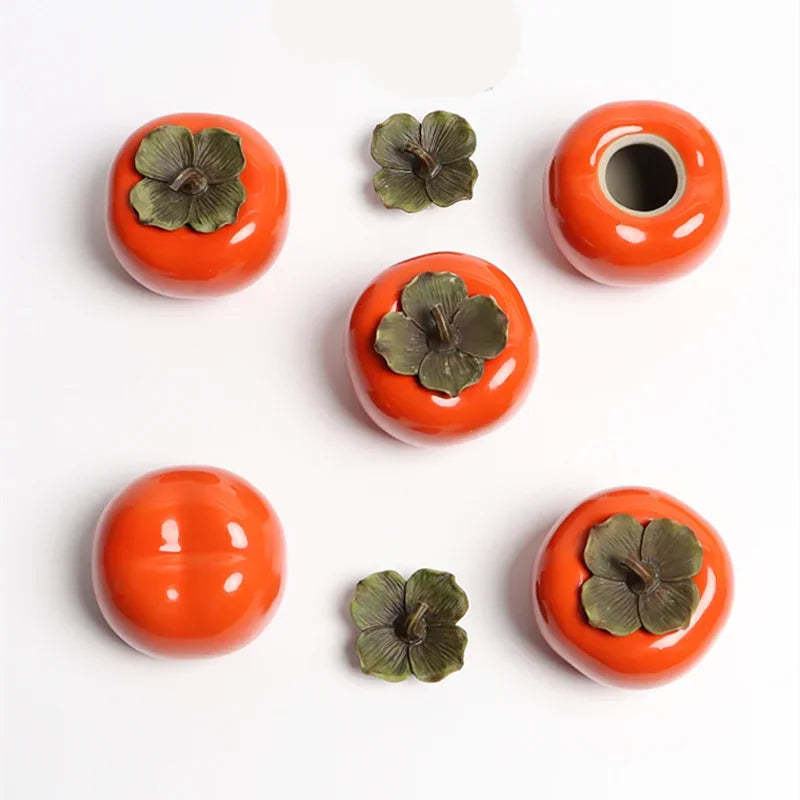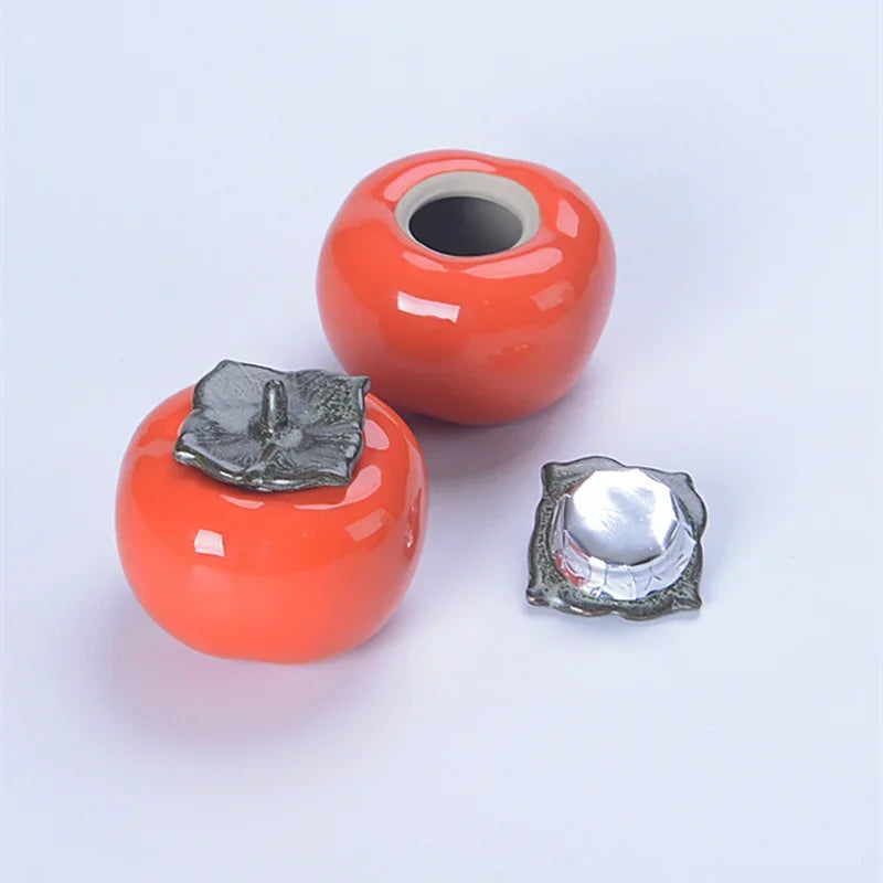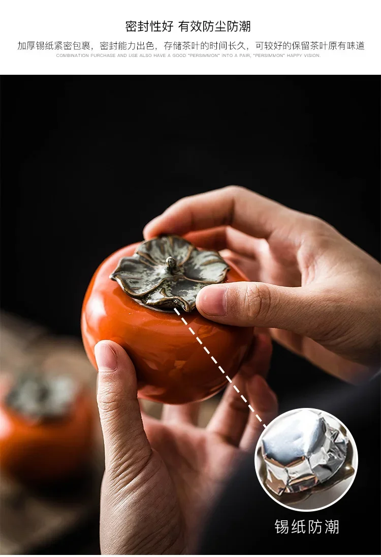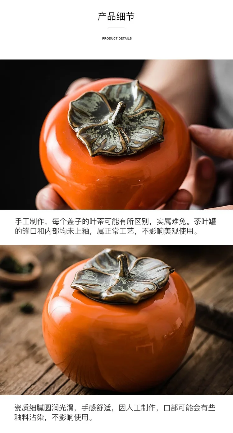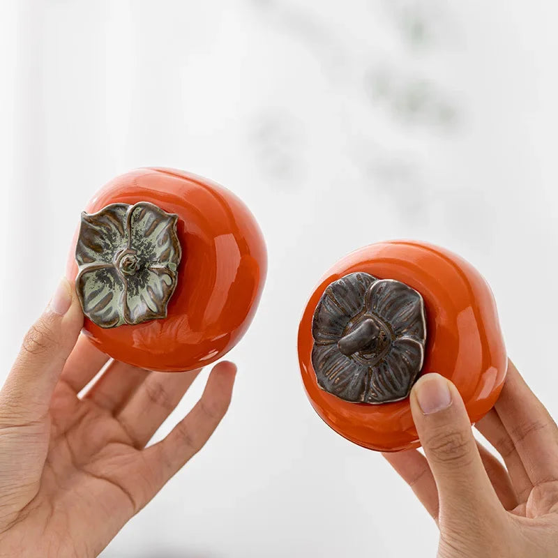 Tea Caddies Persimmon Tea Pot Household Ceramic Spice Storage Tank Pottery Jar Seasoning Container Small Storage Pot Ornament