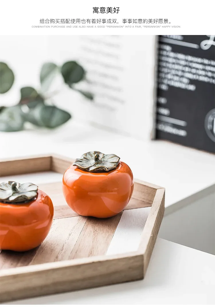 Ceramic Spice Storage Tea Caddies Persimmon Tea Pot Household Small Storage Pot Ornament Tank Pottery Jar Seasoning Container