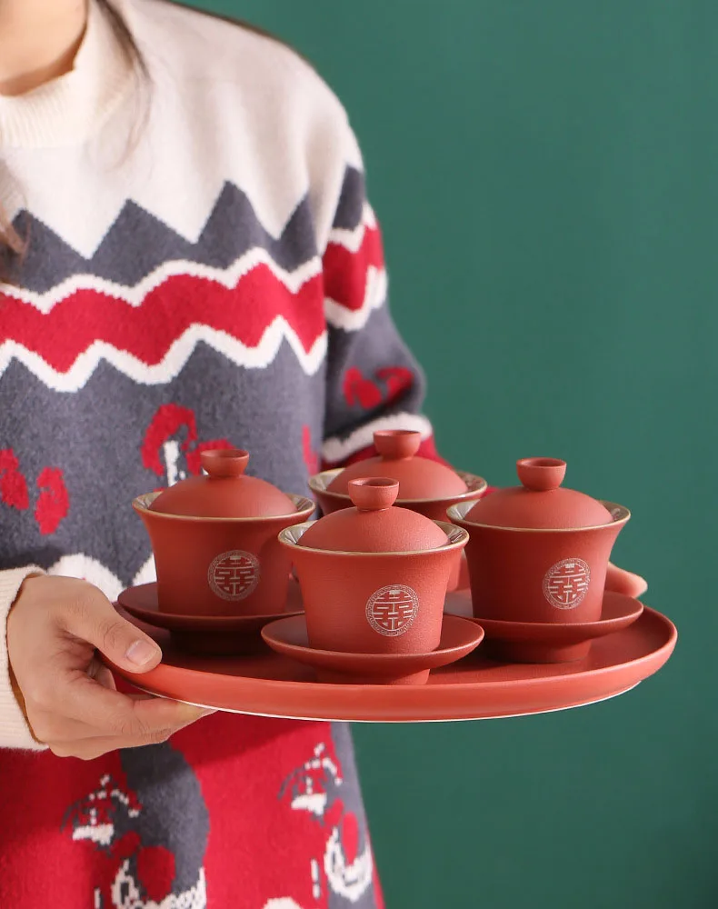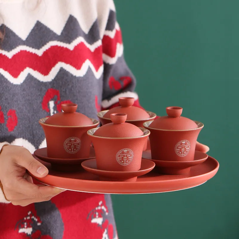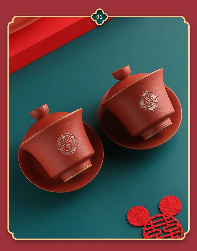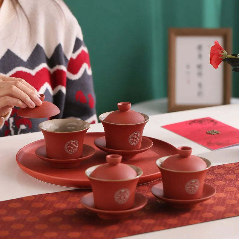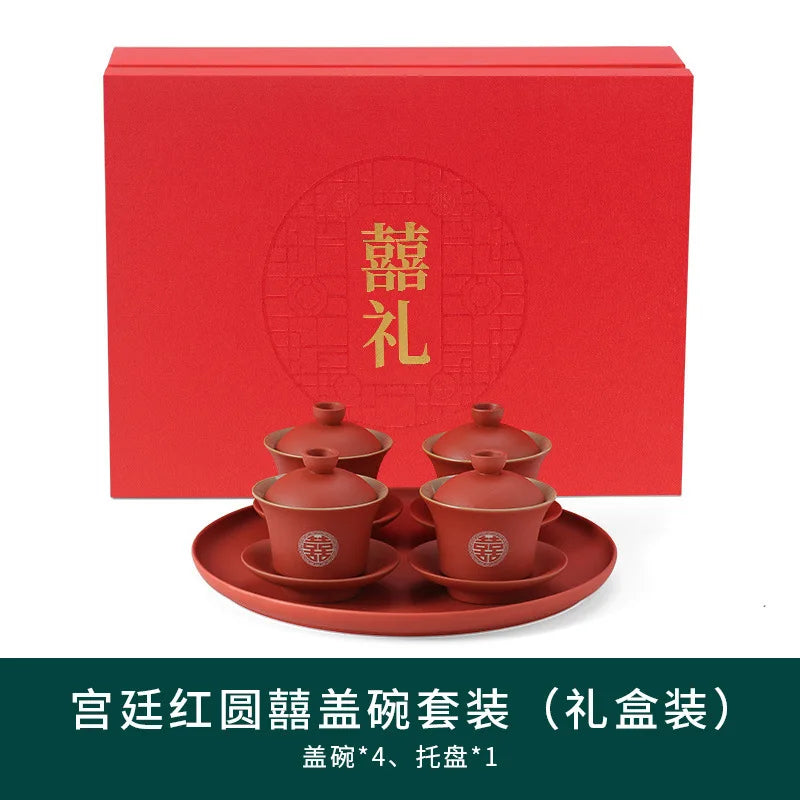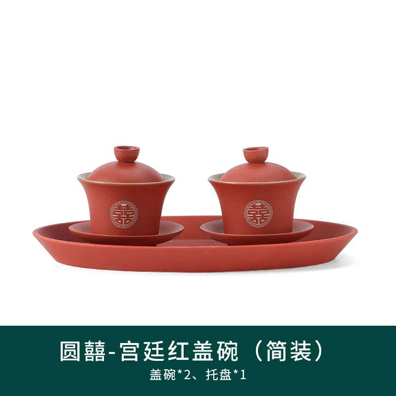 Ceramic Tea Cup Set, Wedding Set, Chinese Palace Style, Wedding Modification Cover Bowl, Wedding Gifts for New Couples
