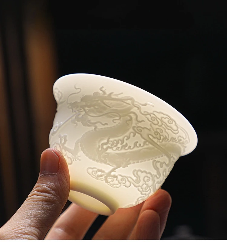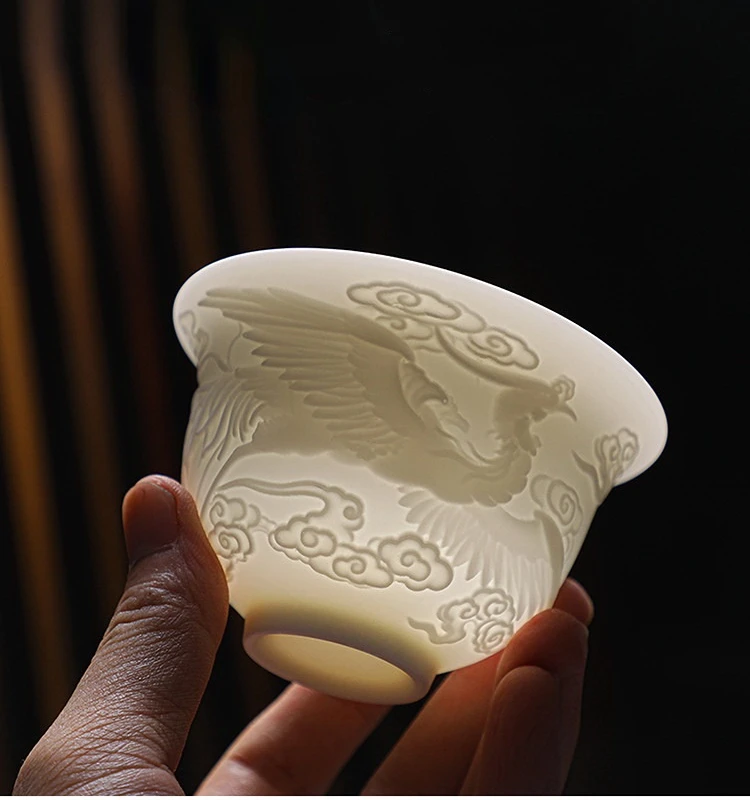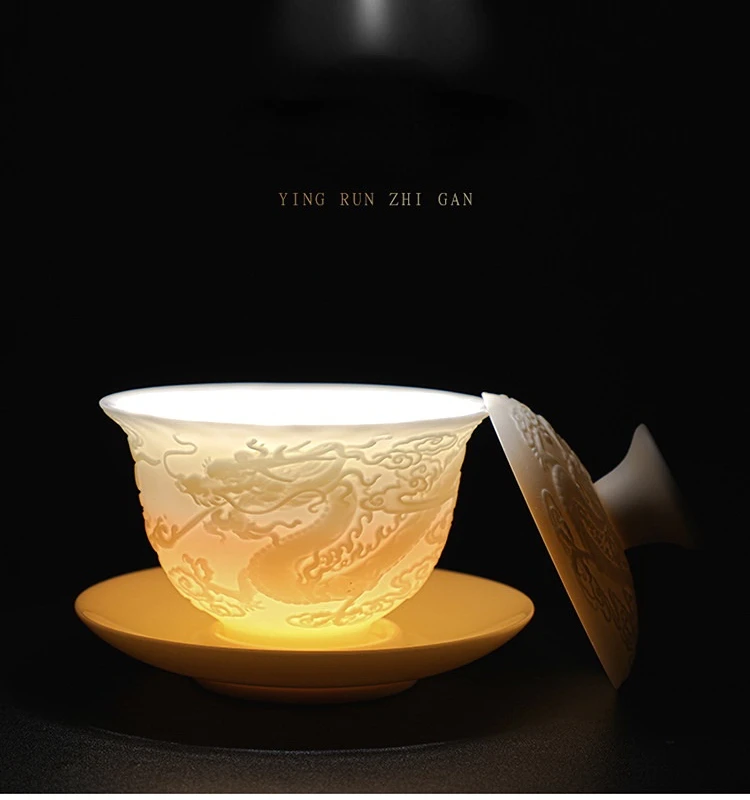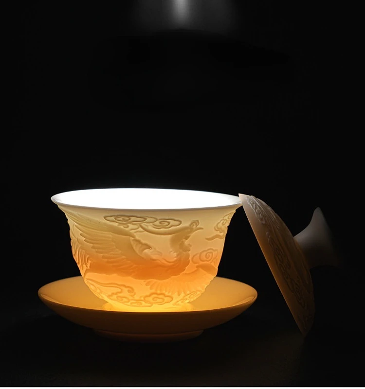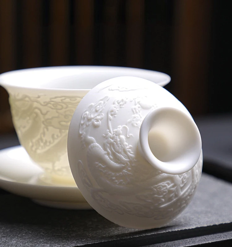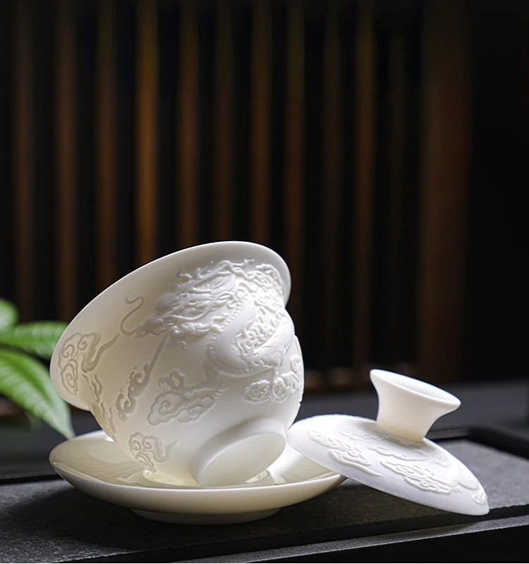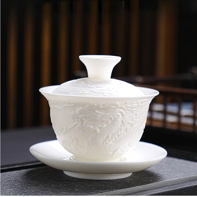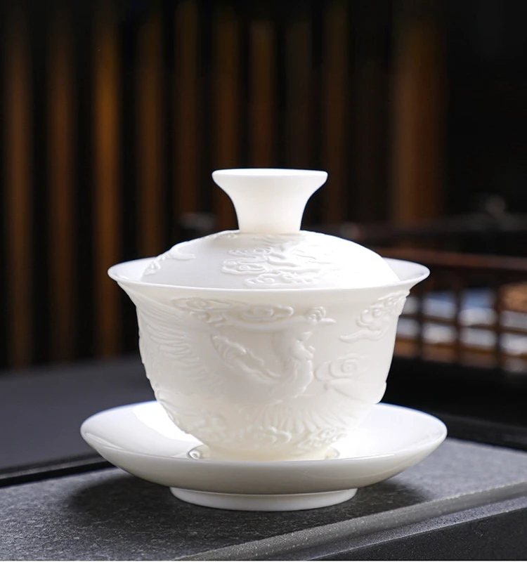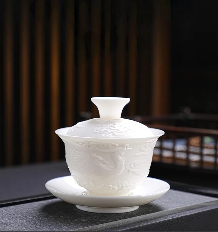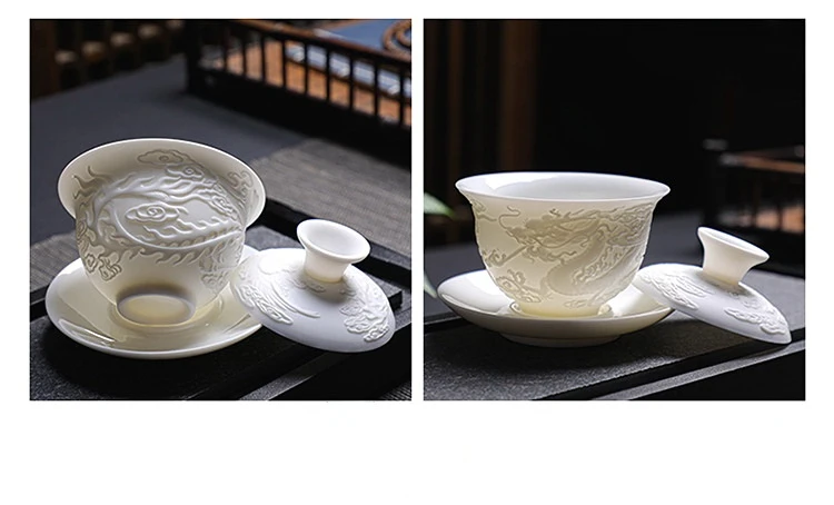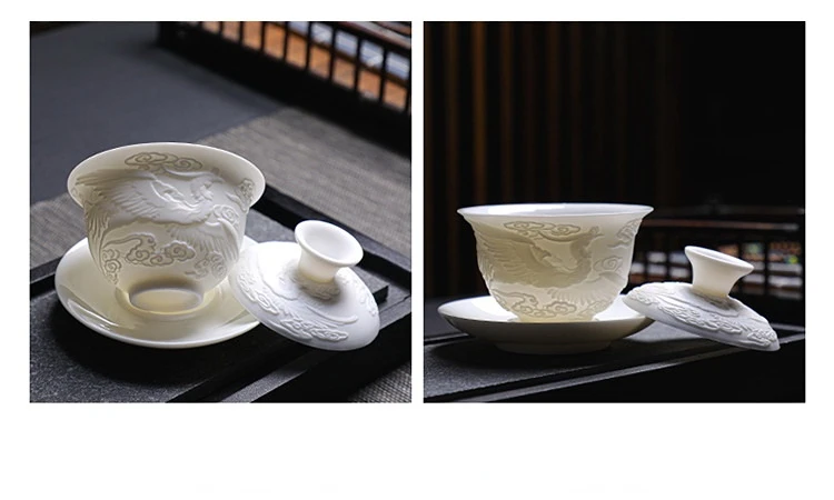 Ceramics Gaiwan 150ml relief dragon and phoenix pattern kung fu tea maker drinkware tea set tea bowls set