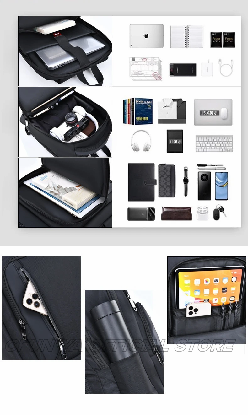 CFUN YA Fashion 2024 Luxury Men's Backpack Oxford 15.6 Laptop Bag Pack Travel Rucksack Handbag College Student Bookbag Mochilas