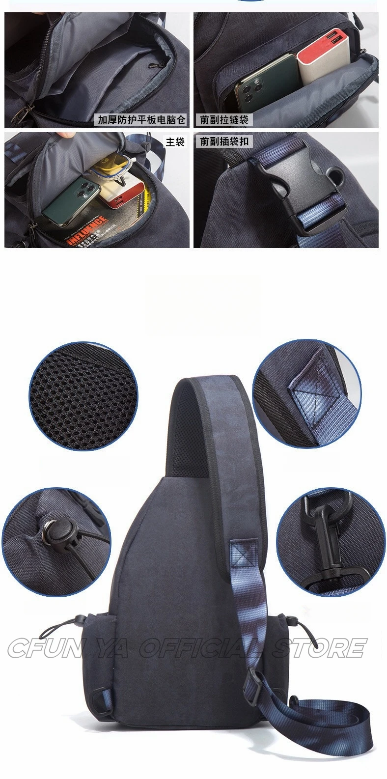 CFUN YA Fashion Men's Chest Bag Summer Trend Outdoor Climbing Hiking Sport Sling Cross Bag Travel Running Backpack Fanny Pack