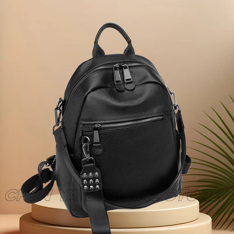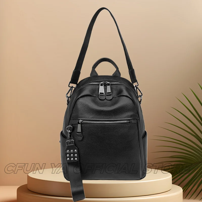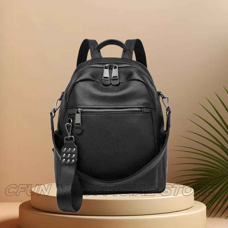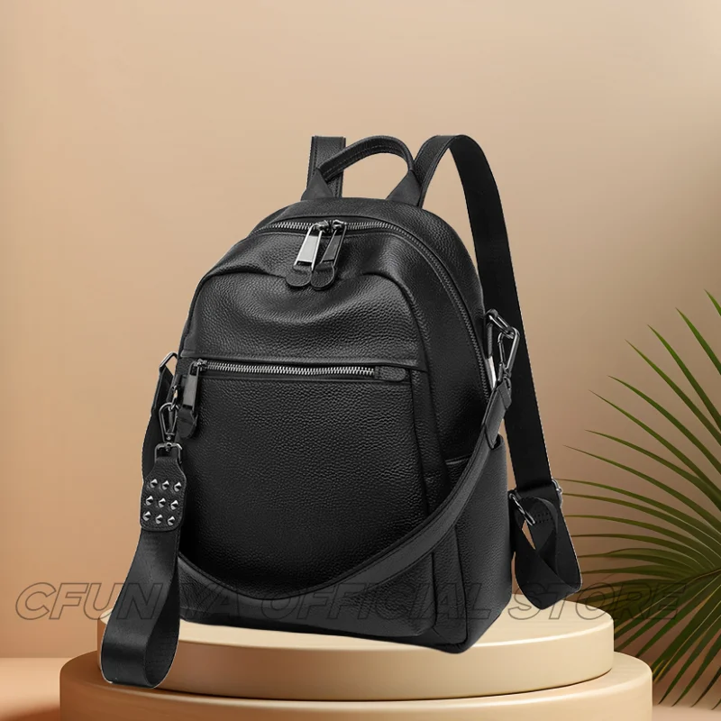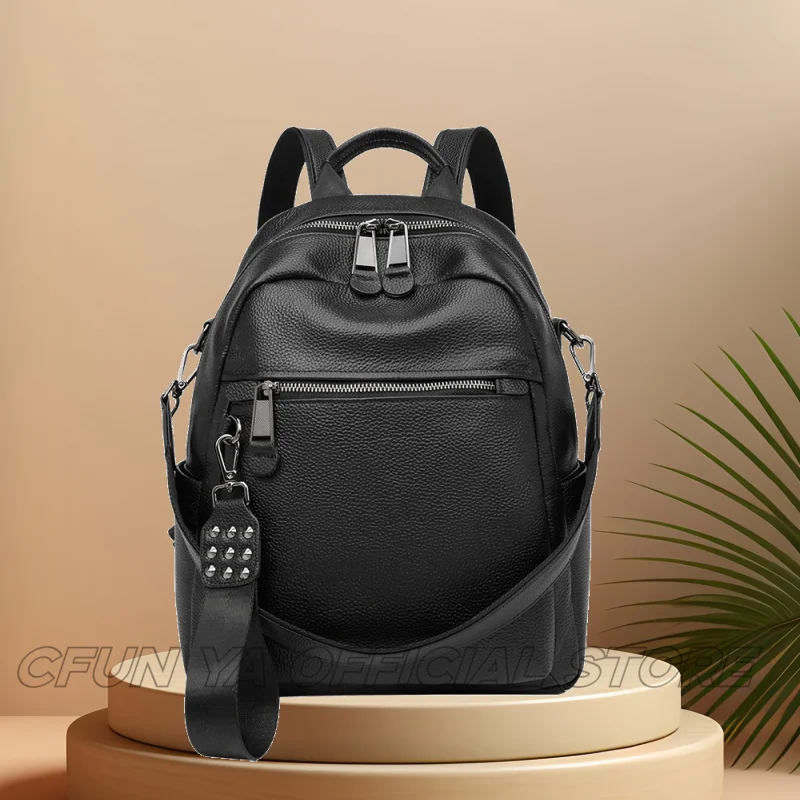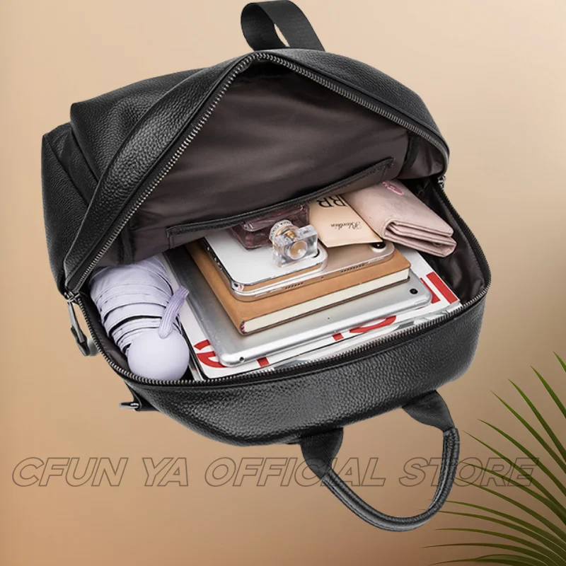 CFUN YA Luxury Black Travel Backpack For Women Soft Leather Causal Bag Pack Student Schoolbag Mochilas Female Shoulder Handbag