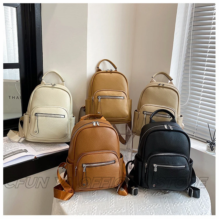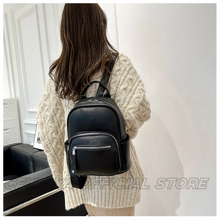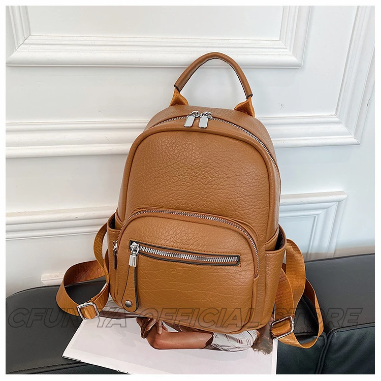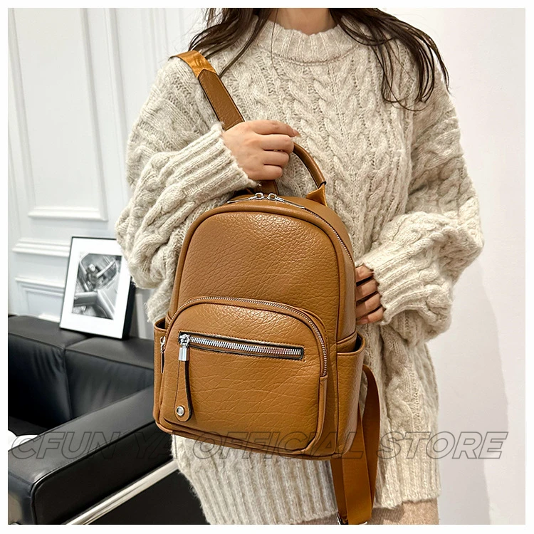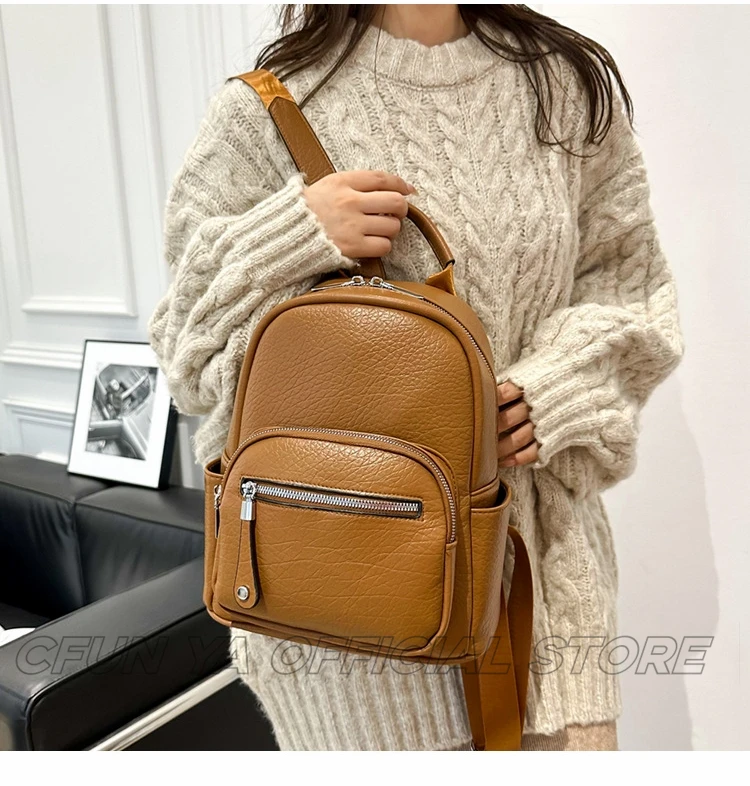 CFUN YA New Fashion Small Backpack For Women PU Leather Mini Travel Bagpack Teenager Girls Shoulder Bag Mochilas Bookbag 2024