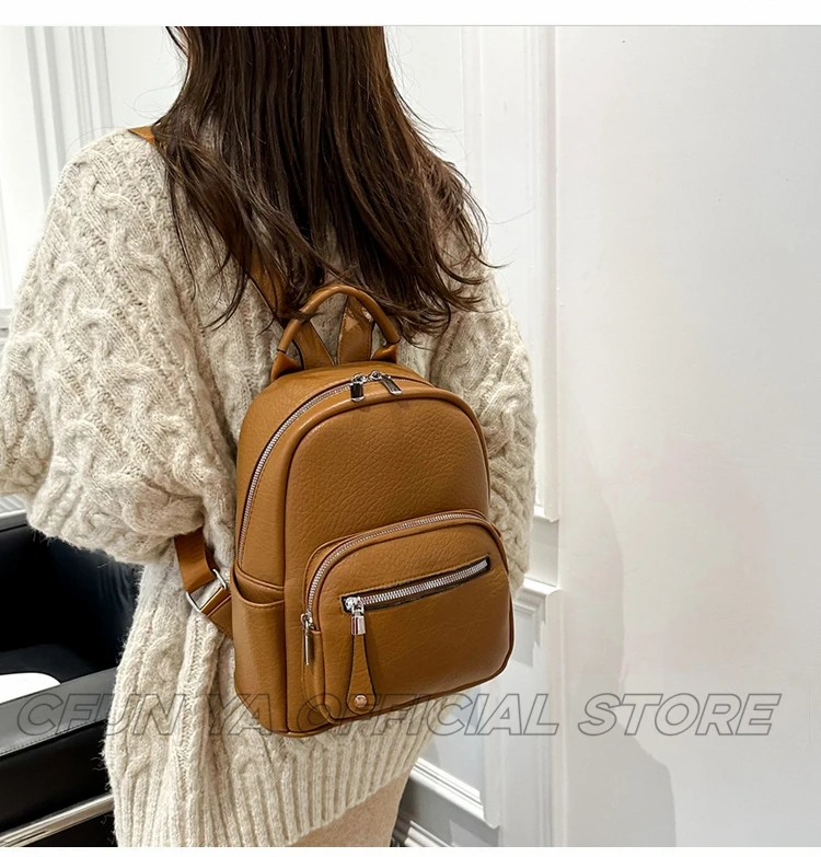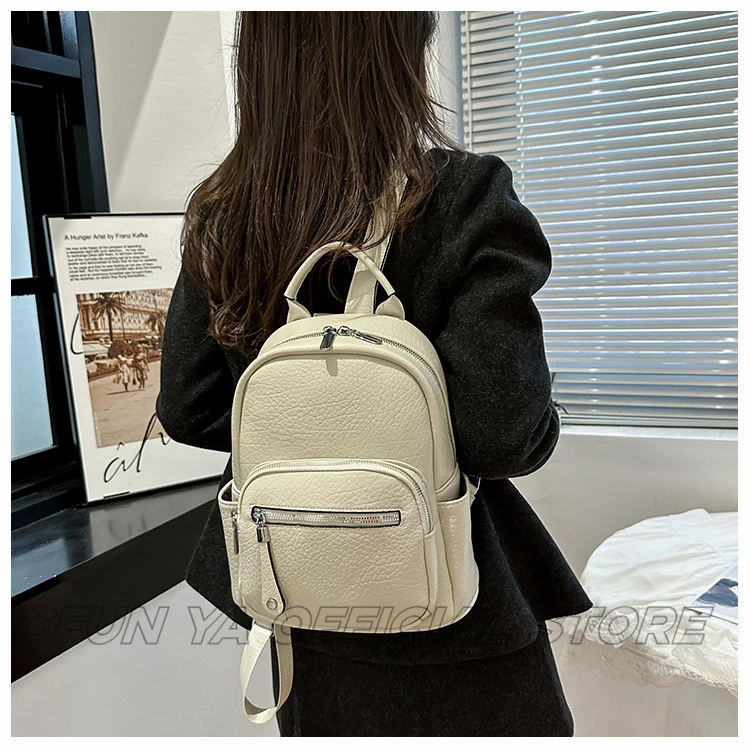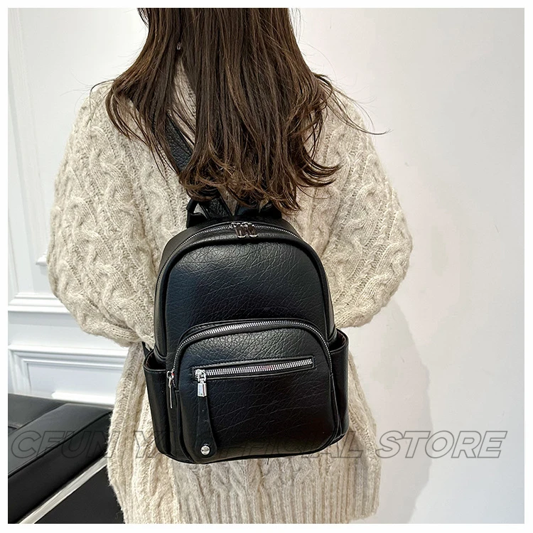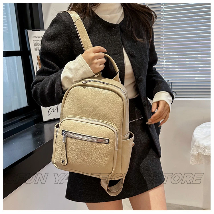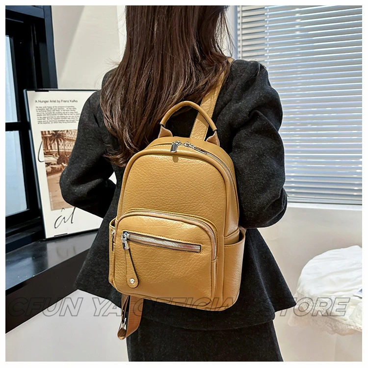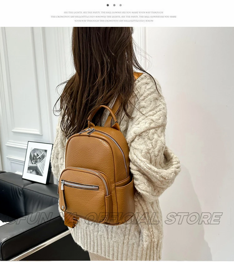 CFUN YA New Fashion Small Backpack For Women PU Leather Mini Travel Bagpack Teenager Girls Shoulder Bag Mochilas Bookbag 2024