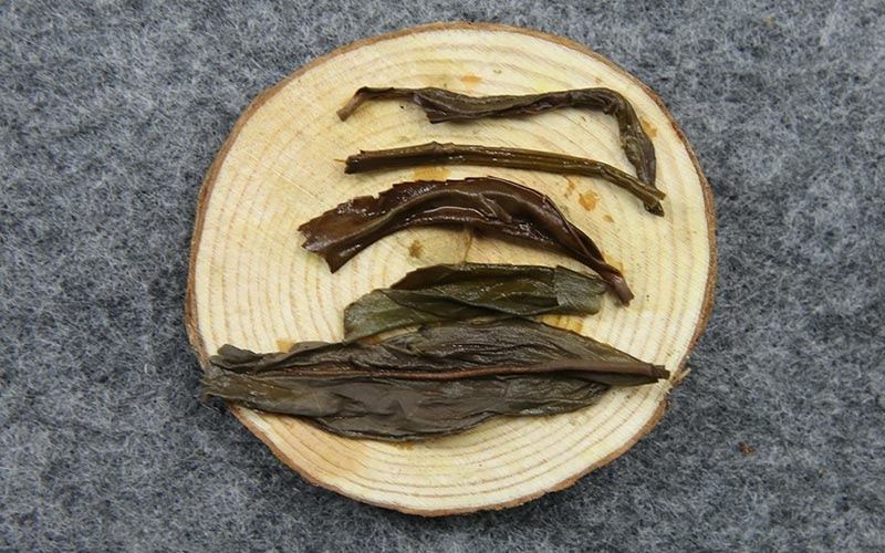Tea leaves (Dried) :The strings are strong, even and straight, with a yellowish-brown eel skin color.