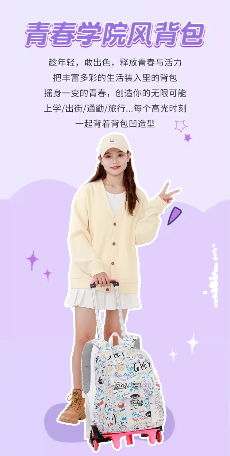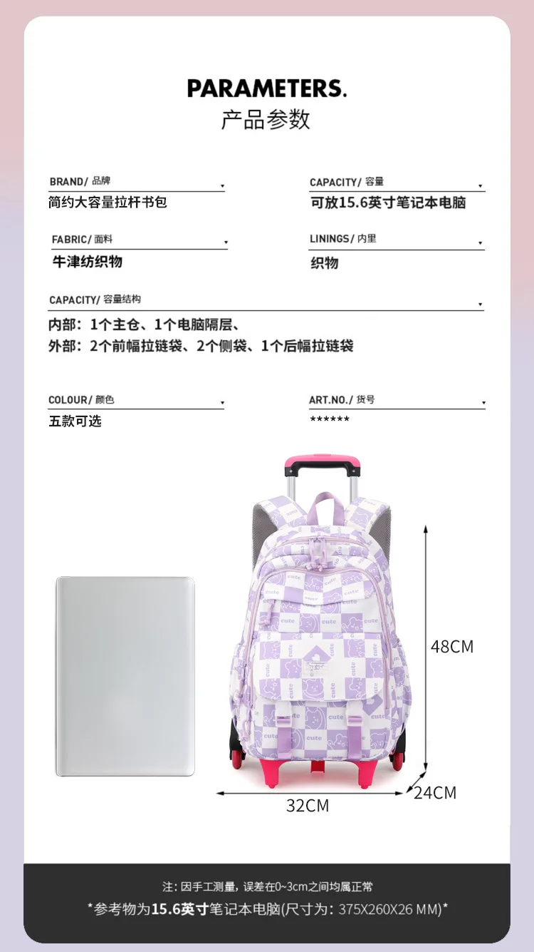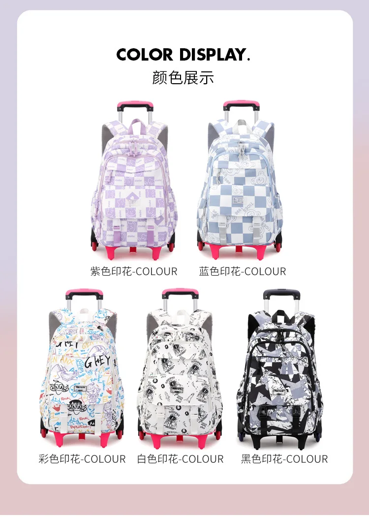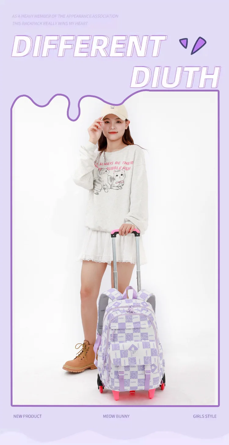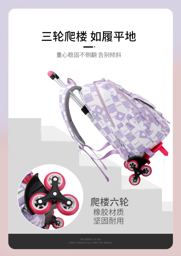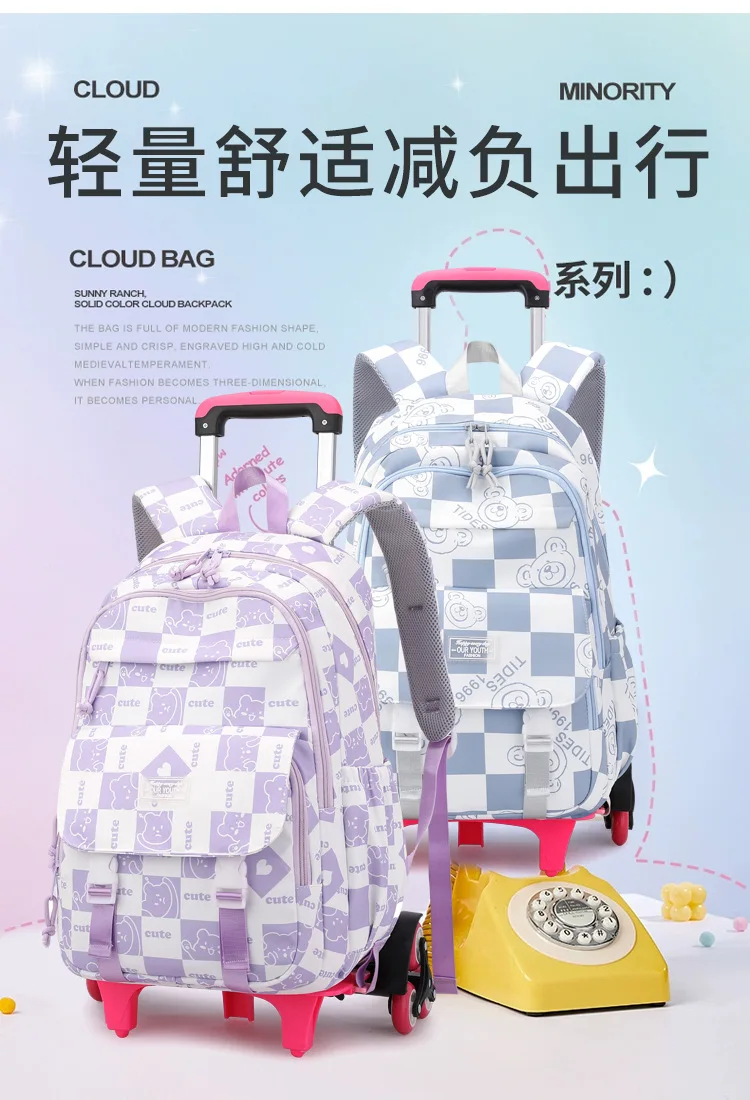 Children School Backpack with Wheels Rolling School Bag For Girls wheeled backpack Trolley Luggage Bag Students Backpack