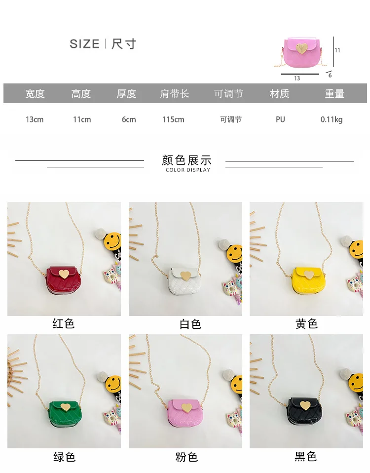 Children's Crossbody Bags Cute Little Girls Mini Shoulder Bag for Kids Fashion Heart Pattern Coin Purse Small Handbags