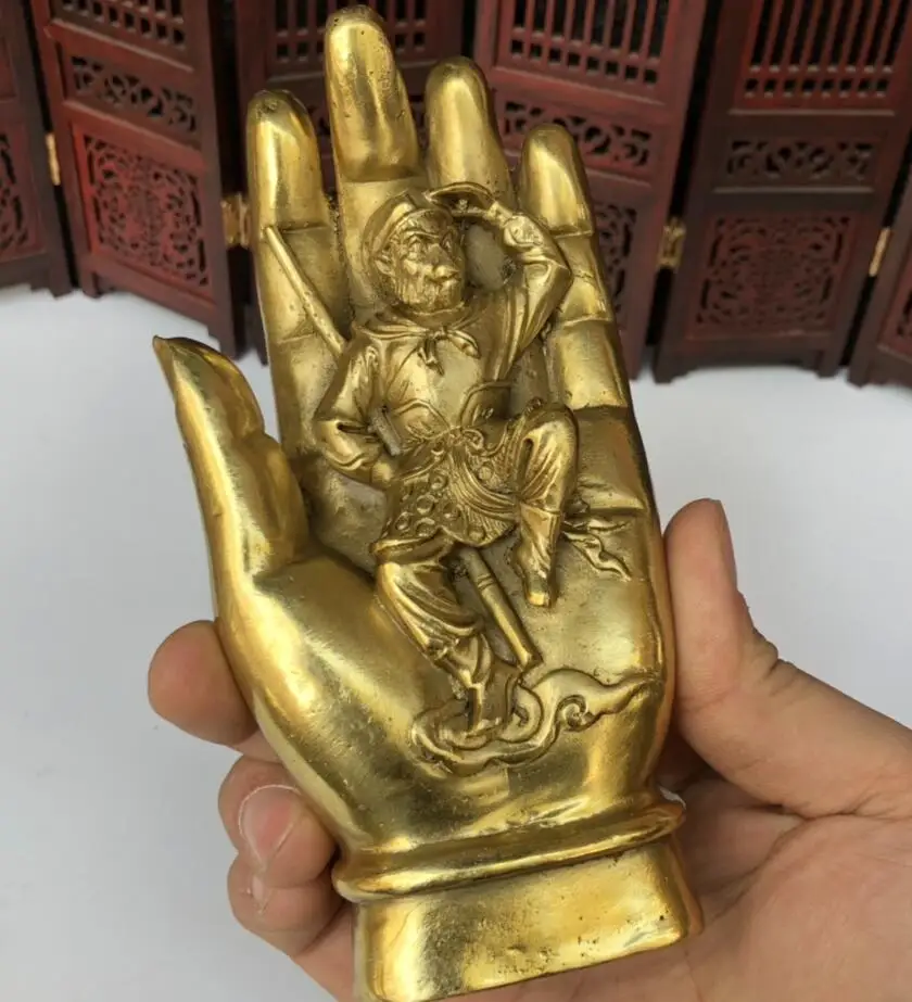 China brass Buddha hand Monkey King crafts statue