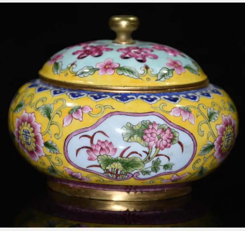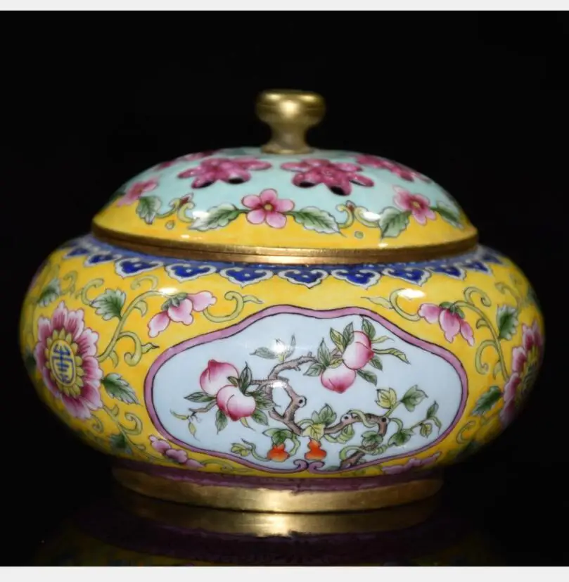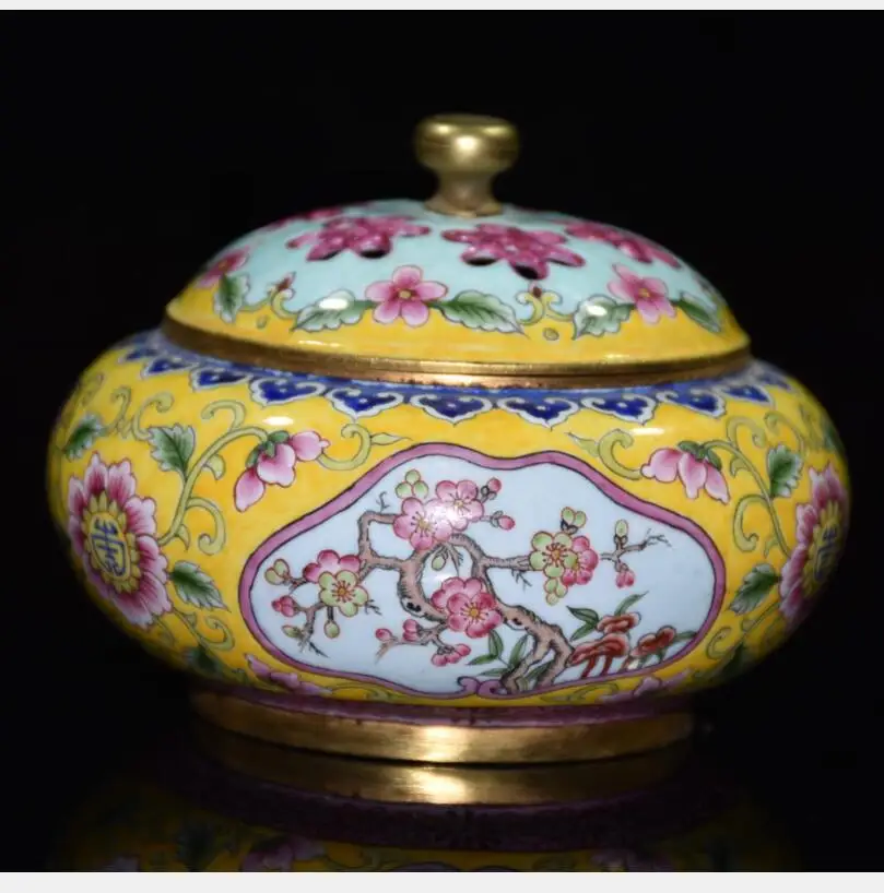 China brass cloisonne flowers Pattern Incense burner crafts statue