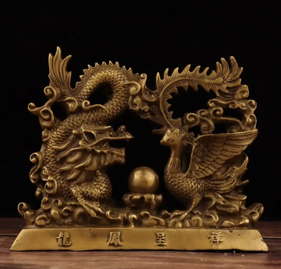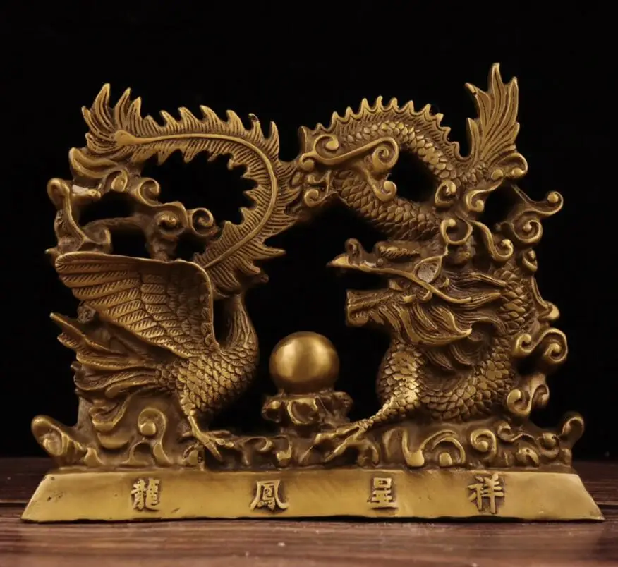 China brass dragon phoenix Chengxiang crafts statue