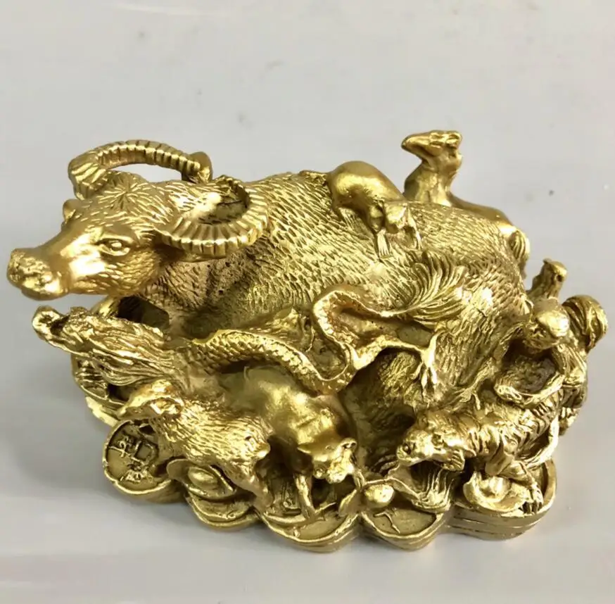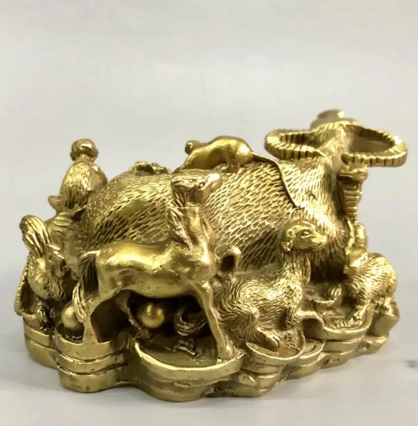China brass recruit wealth twelve zodiac crafts statue
