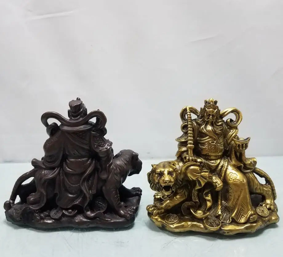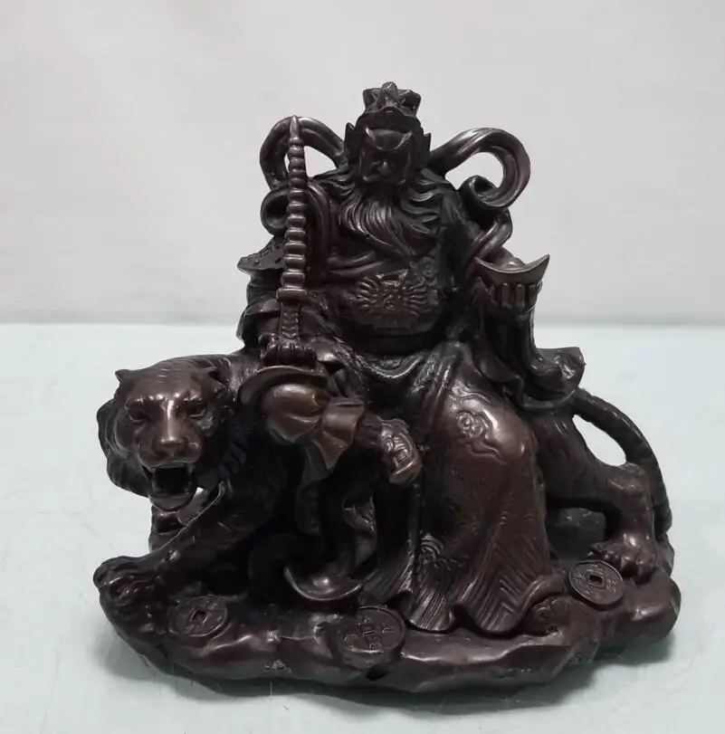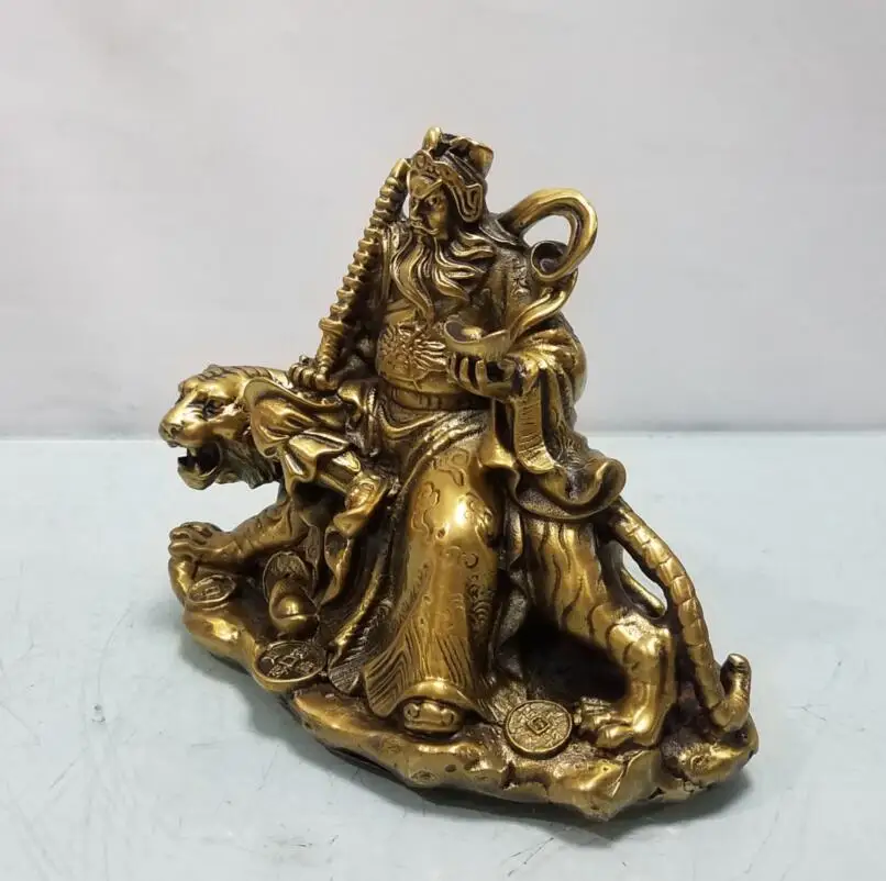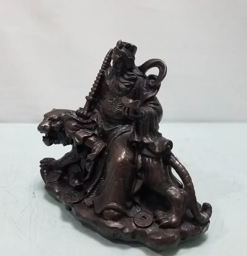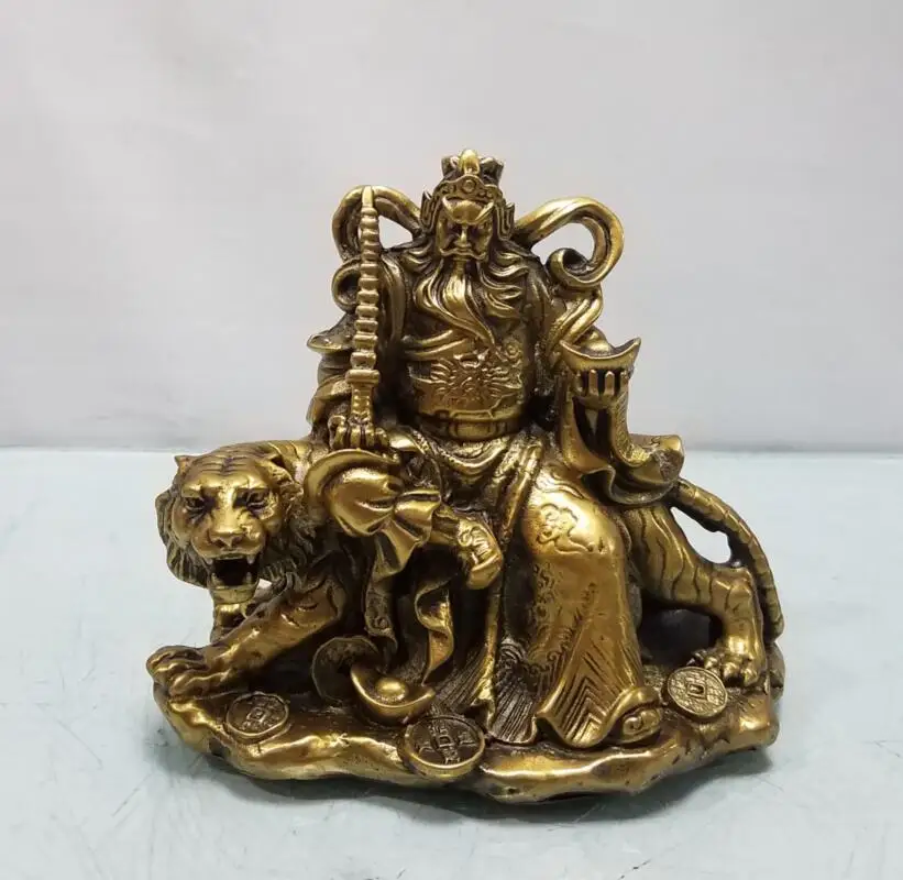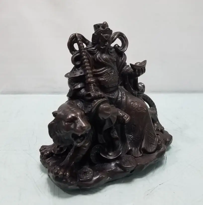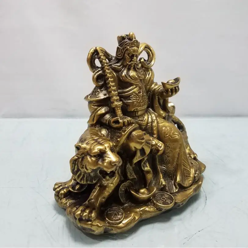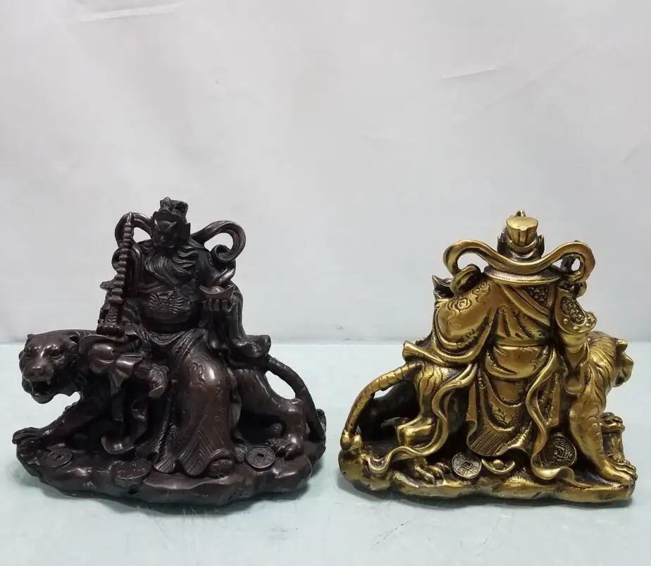 China brass ride tiger god of wealth crafts statue