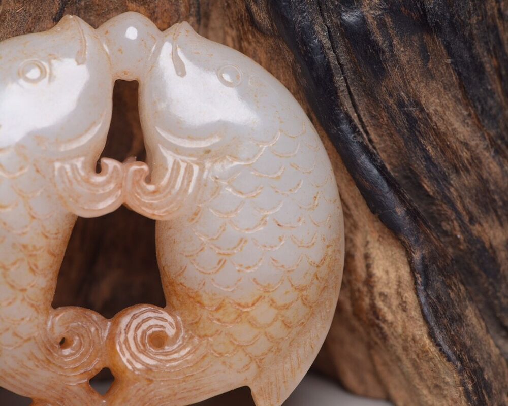 China Old Natural Hetian Jade Hand Carved Pair Nice Fish Statue Pendant Jewelry