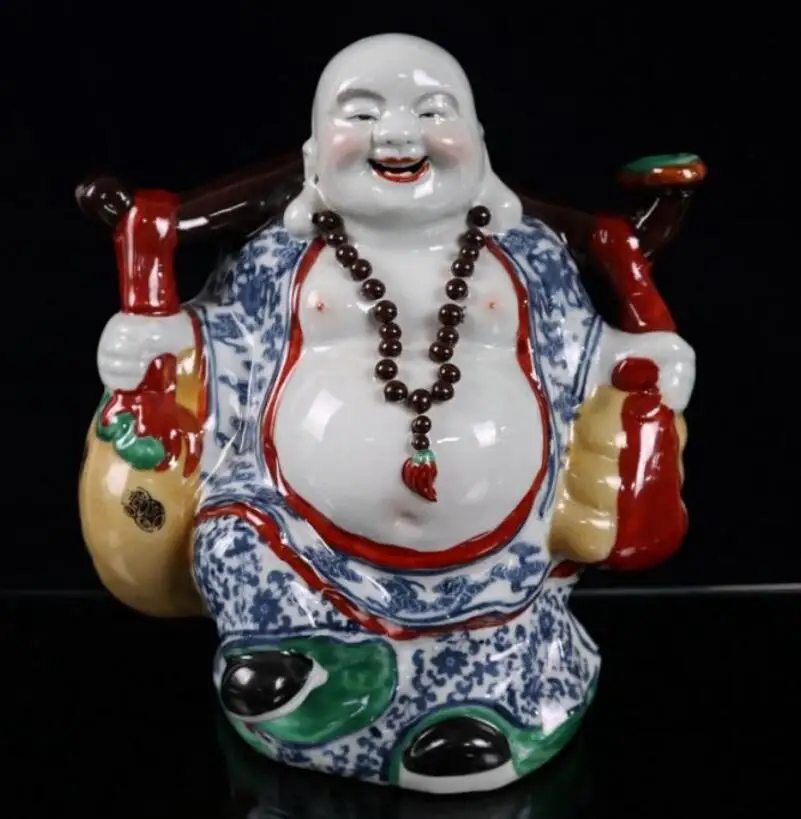 China seiko Blue and white ceramic maitreya Buddha crafts statue