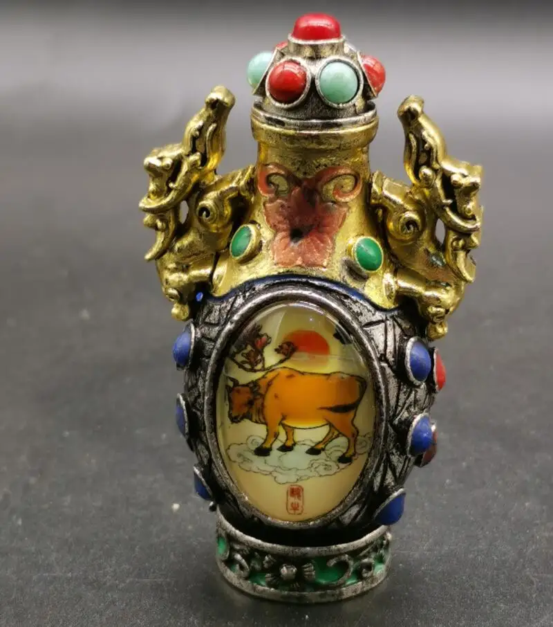 China Tibetan archaize White copper Snuff bottles crafts statue