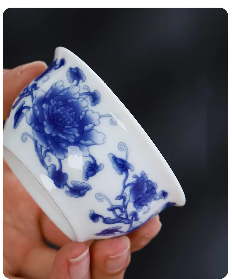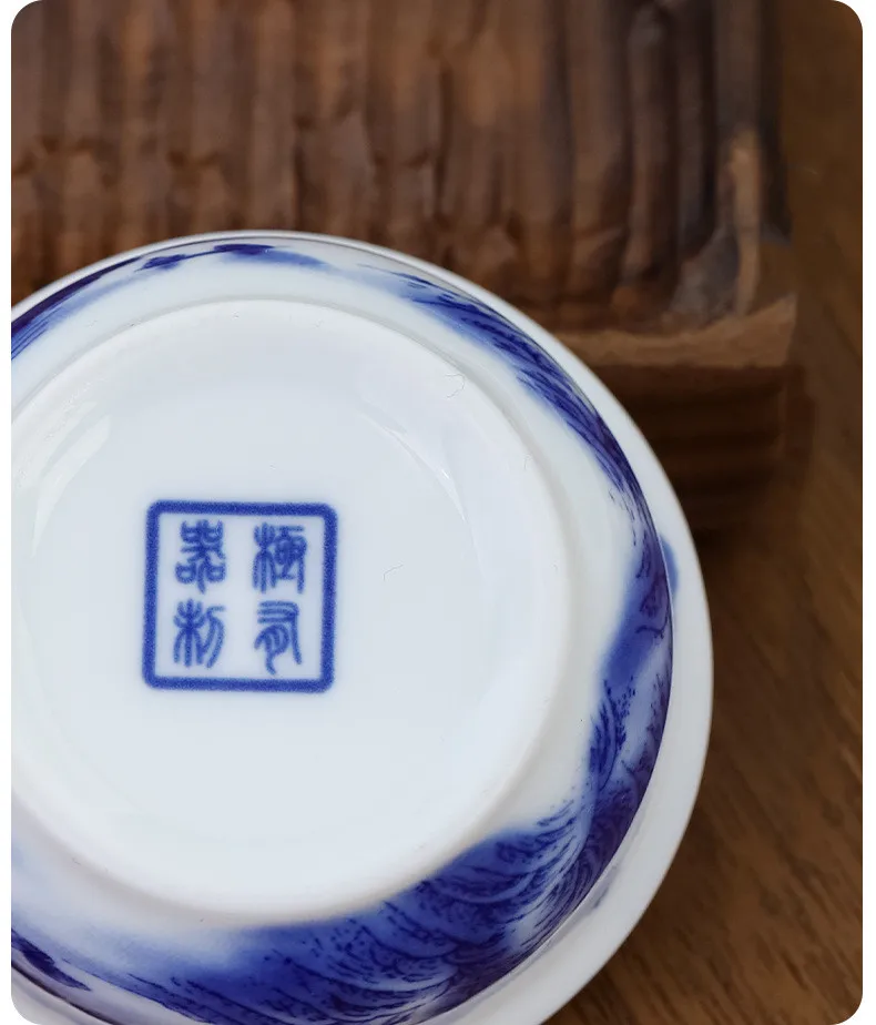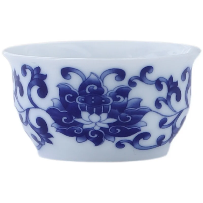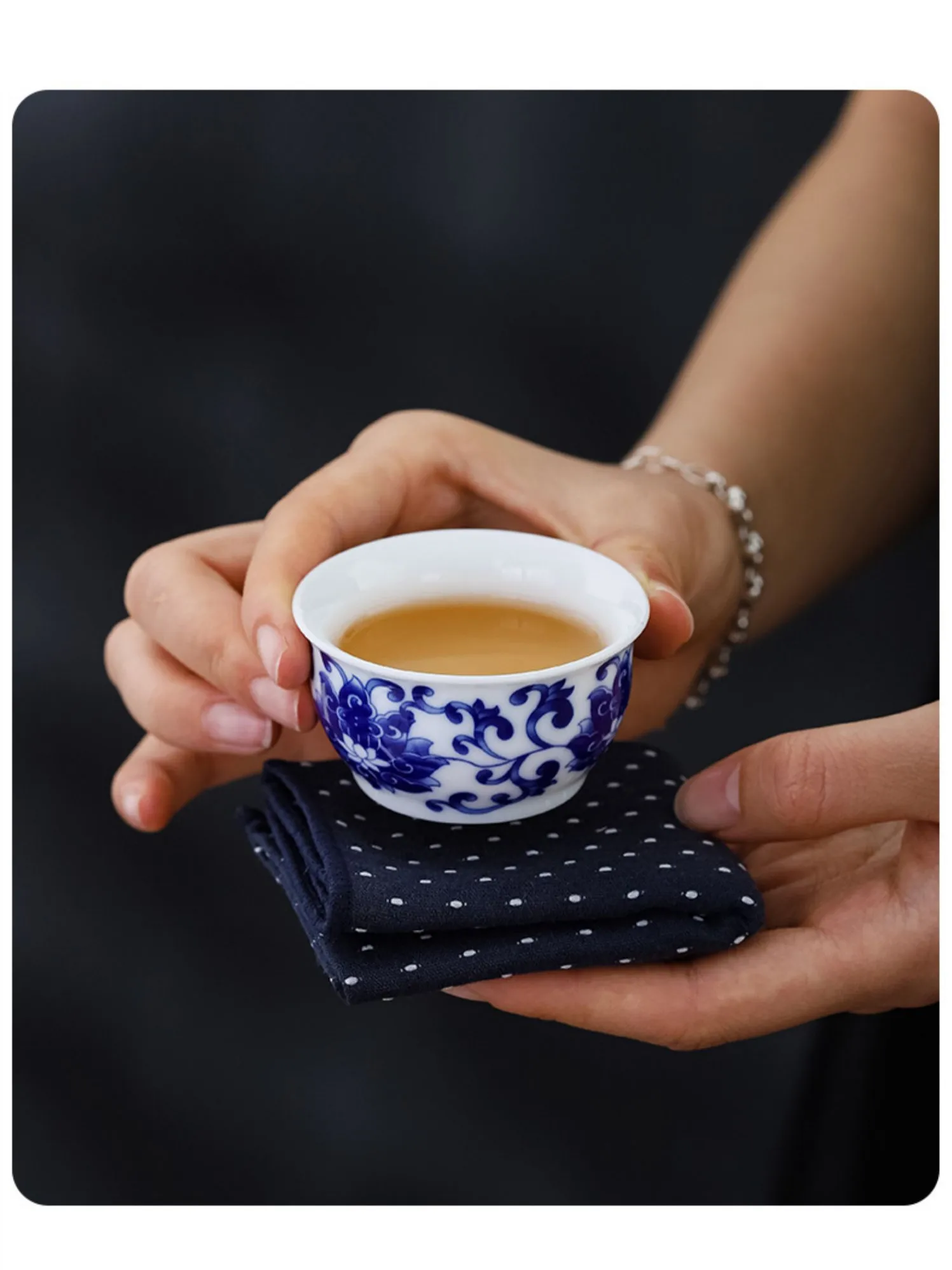 Chinese Blue and White Porcelain Teacup Portable Meditation Cup Handmade Ceramic Tea Bowl Master Cup Customized Tea Set 50ml