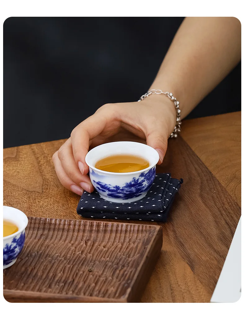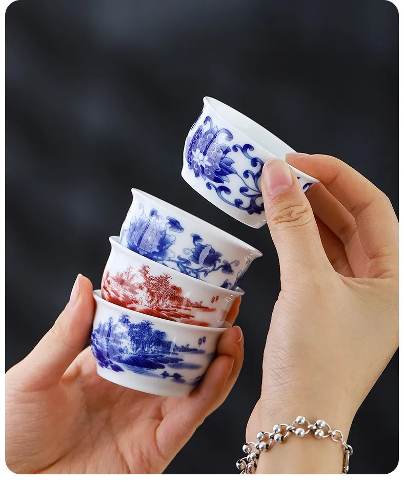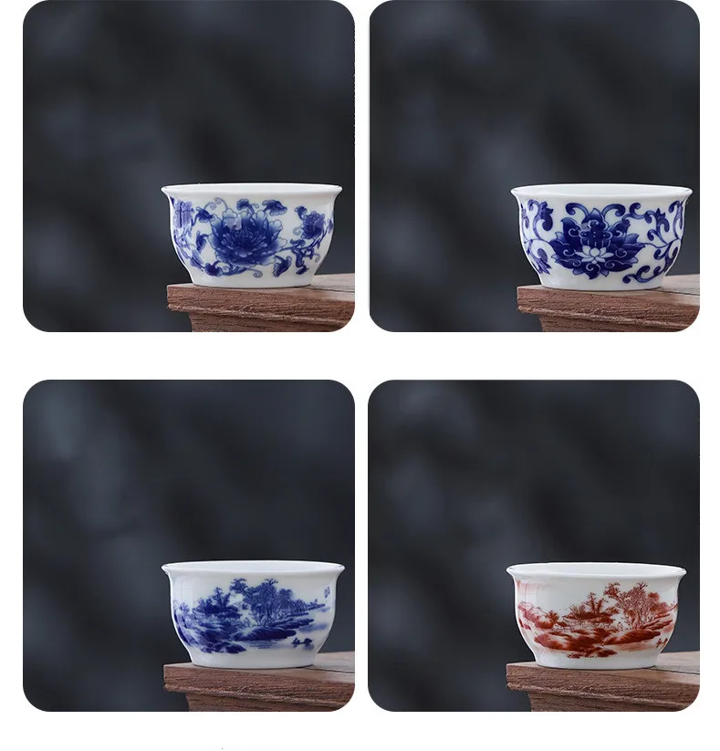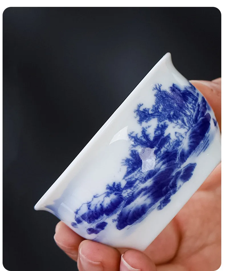 Chinese Blue and White Porcelain Teacup Portable Meditation Cup Handmade Ceramic Tea Bowl Master Cup Customized Tea Set 50ml
