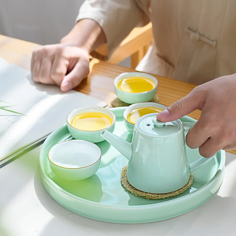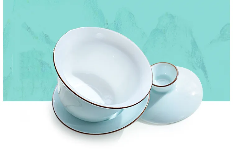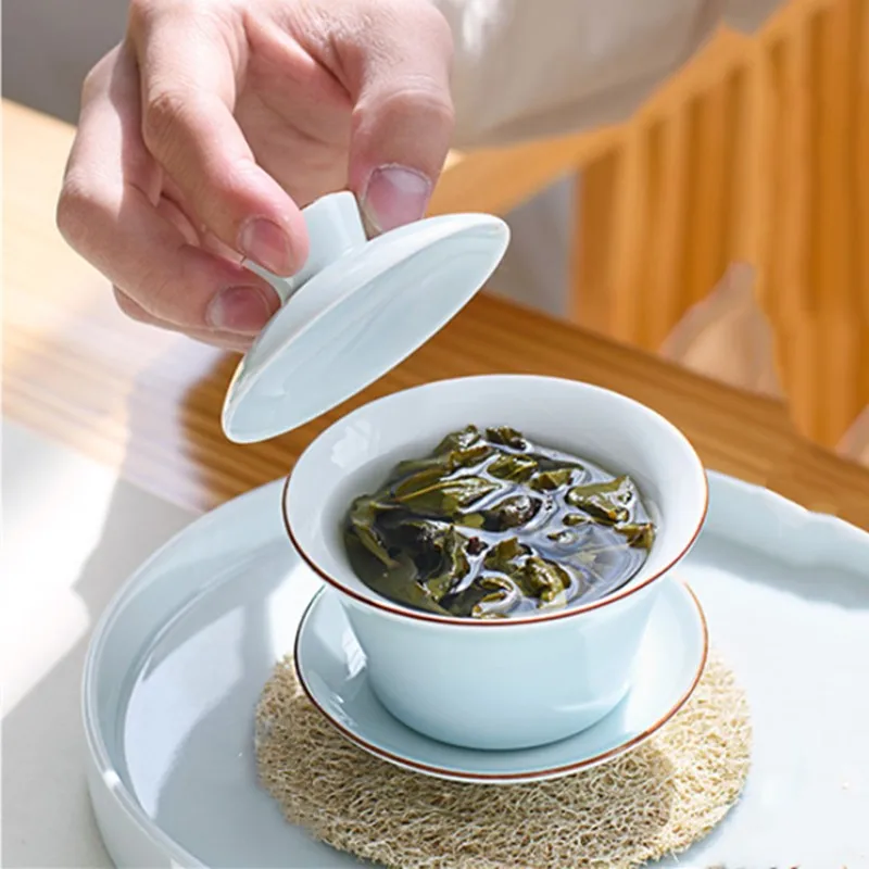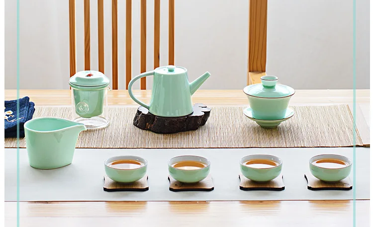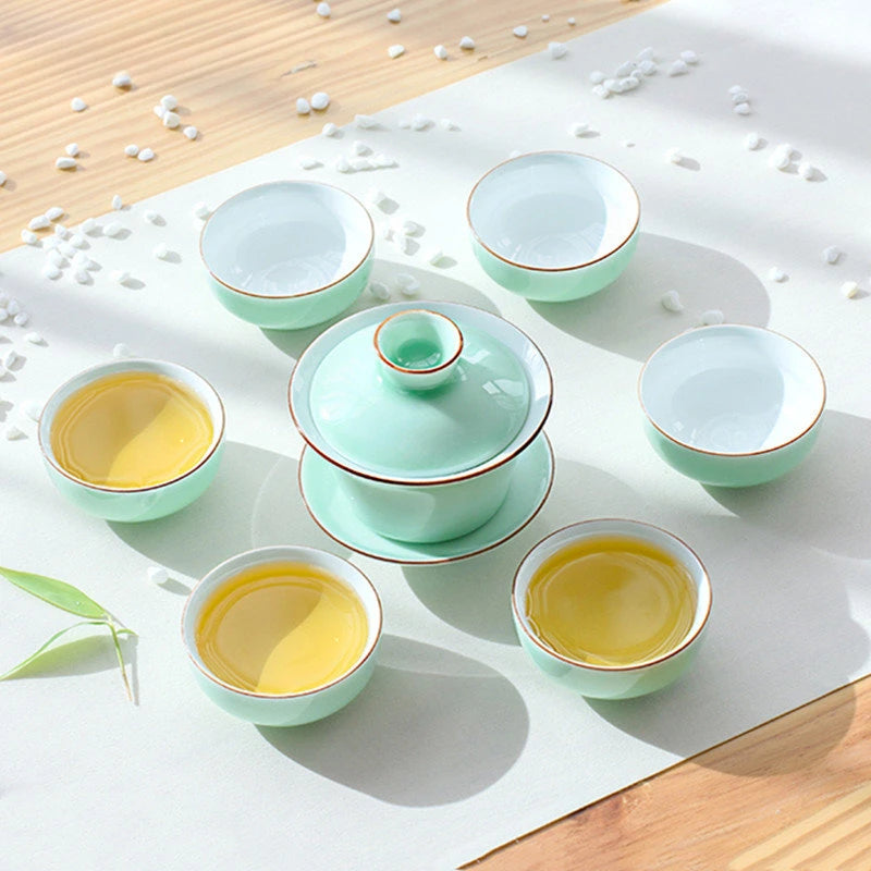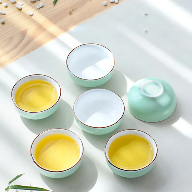Chinese Celadon Tea Cup Set Creative Ceramic Gaiwan Teacup Travel Portable Teaware Tradition Handmade Tea Ceremony Accessories