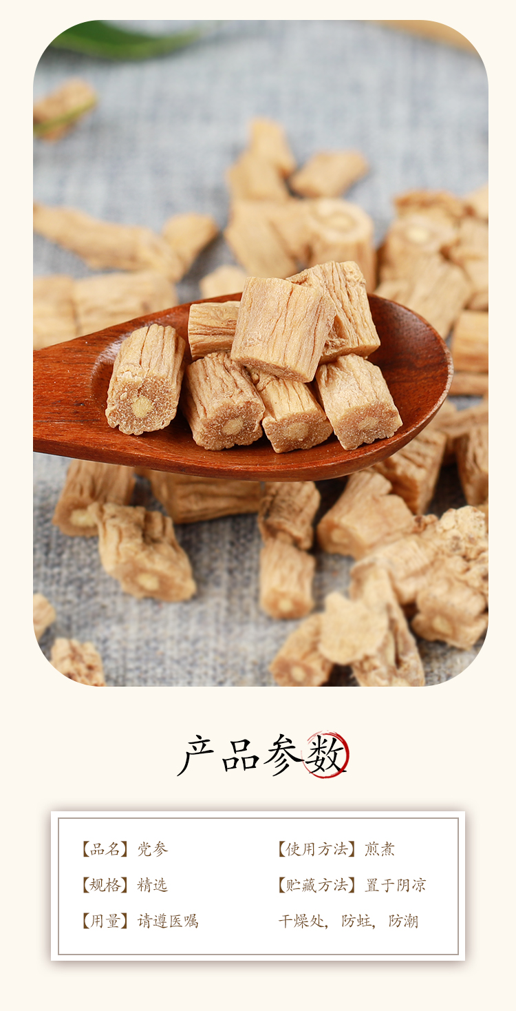Modern pharmacological actions 1. It regulates gastrointestinal motility, fight against ulcer, and enhance immunity; 2. It affects both excitatory and inhibitory neural processes; 3. Saponins of Codonopsis excite the respiratory center; 4. It lowers the animal blood pressure temporarily but raises the blood pressure on rabbits that are in late hemorrhagic shock; 5. It significantly increases rabbits’ blood sugar. And rise of serum glucose level is related to the sugar contained; 6. It increases animal erythrocytes, hemoglobin, and reticulocytes; 7. It also delays aging, and fights anoxia and radiation.