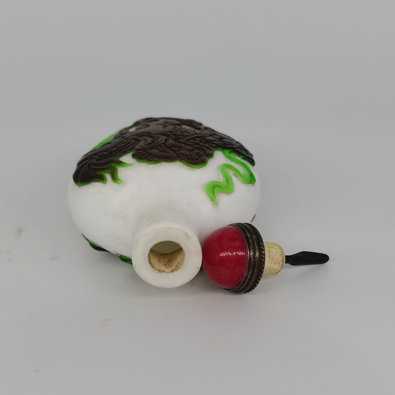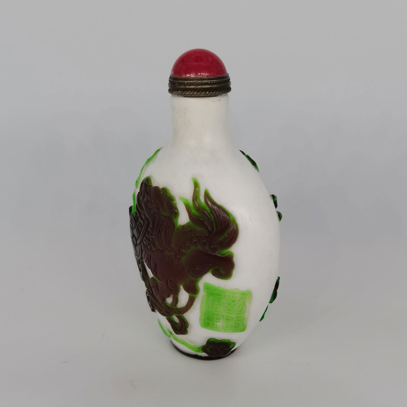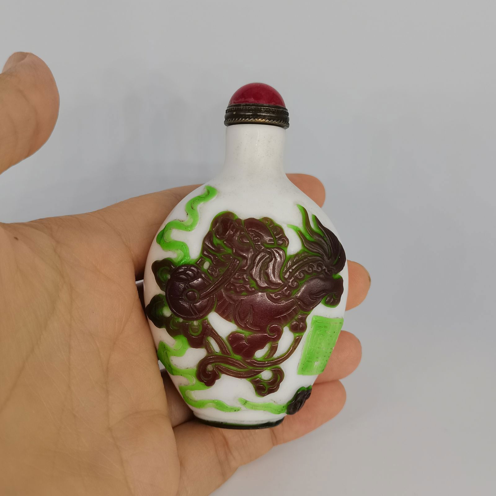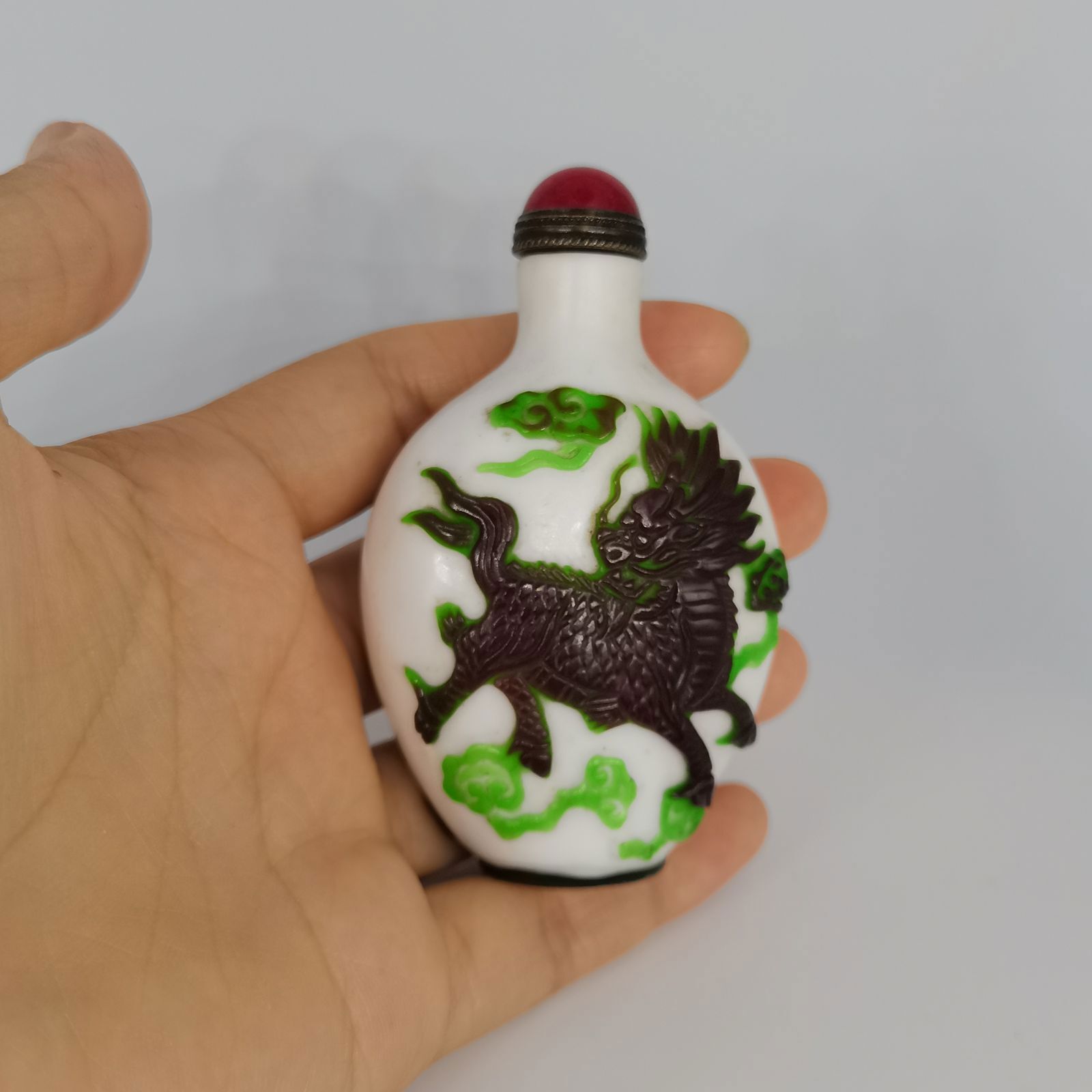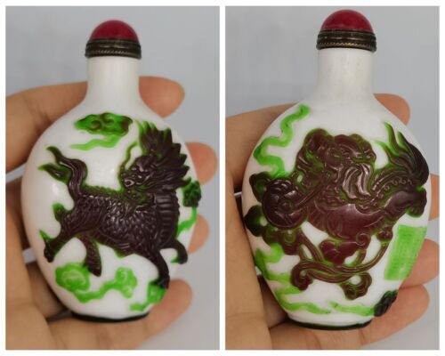 Chinese Old Beijing Glaze Carved Unicorn Statue Snuff Bottle Collectibles Art Size: (3.26x1.96) "inch = ( 83x50) mm   Weight: 60 g