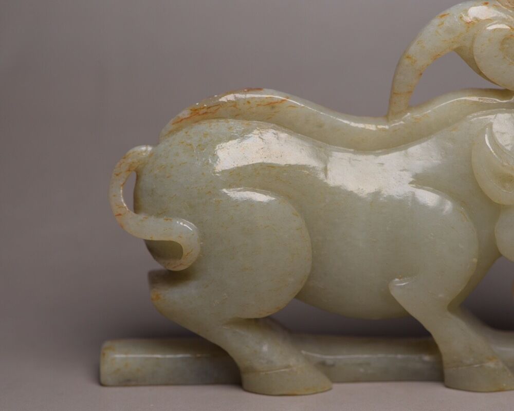 Chinese Old Natural Hetian Jade Hand Carved Pig Statue Figurines Art Work Rare Size:(3.66x2.4x0.86) "inch =: (9.3×6.0×2.2)cm Weight: (144) g