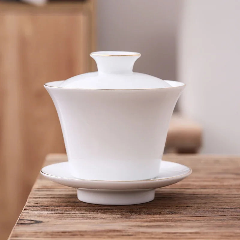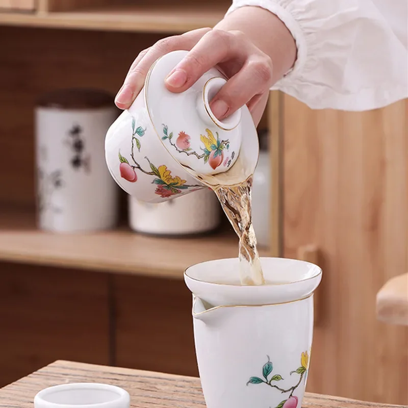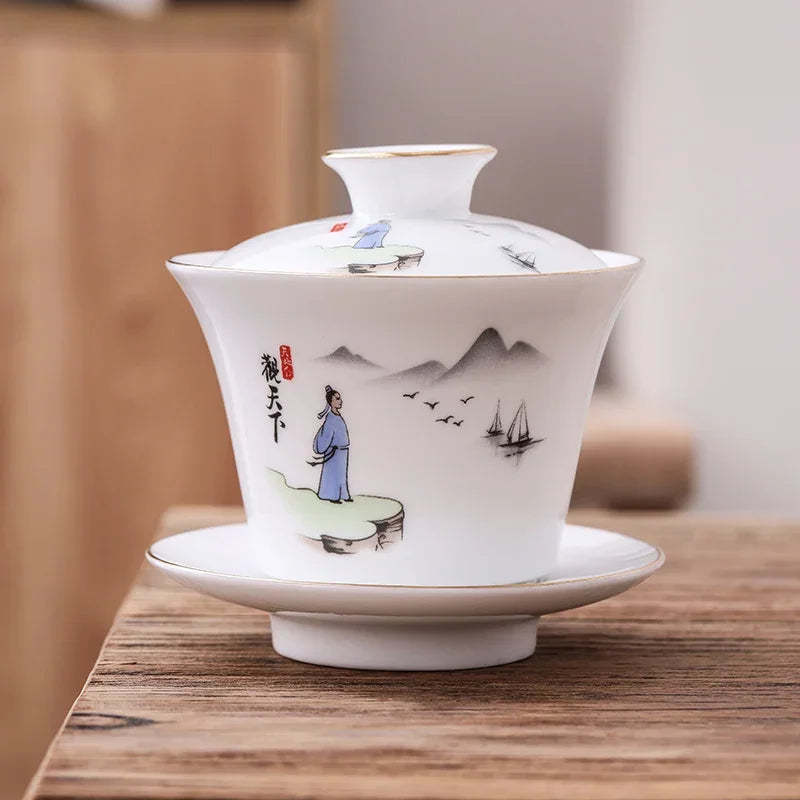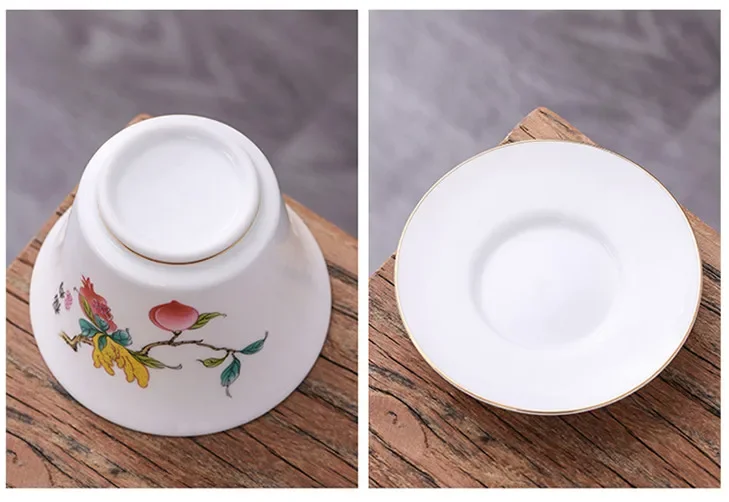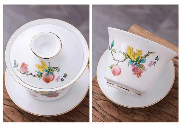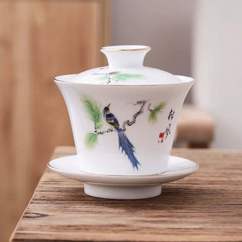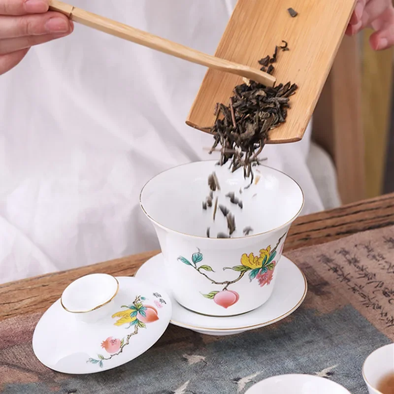 Chinese Phnom Penh White Porcelain Gaiwan Hand Painted Flowers Pattern Tea Bowl Home Ceramic Teacup Teaware Single Cup 180ml