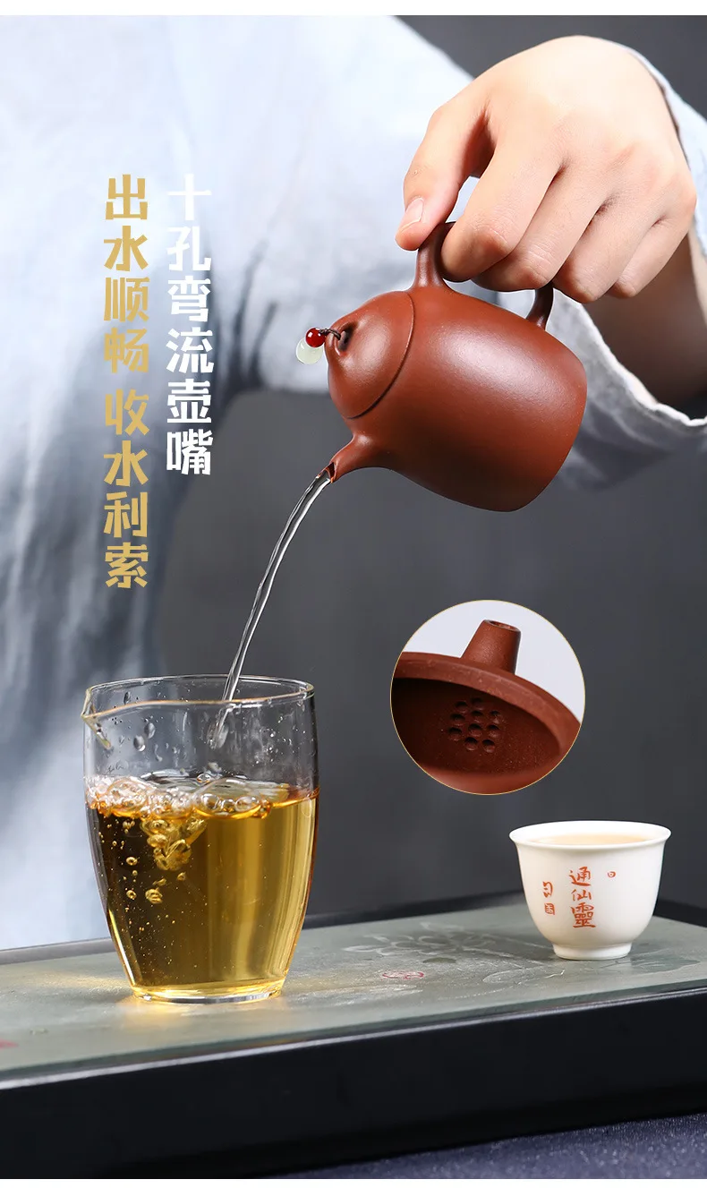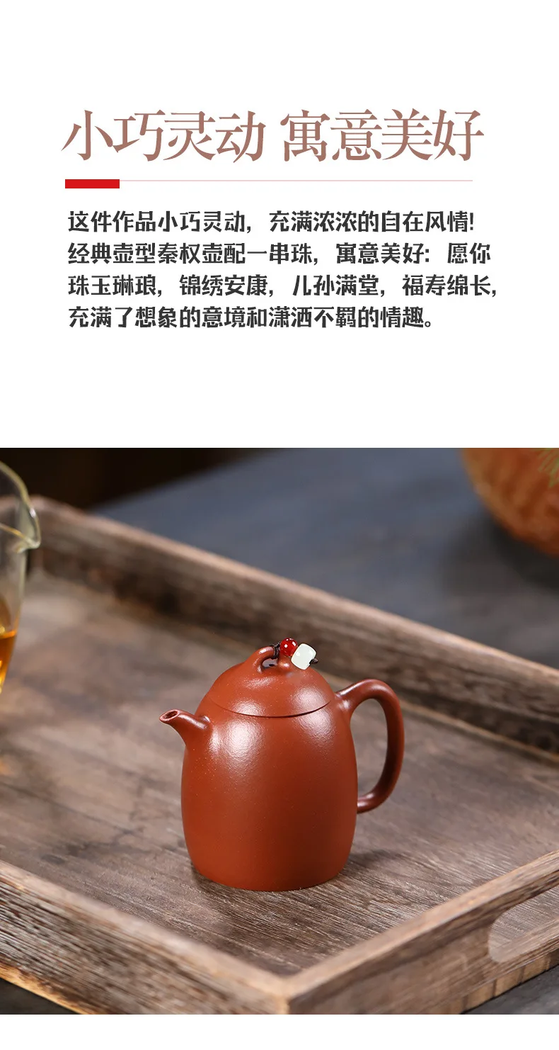 Chinese teapot raw ore clear cement beaded Qinquan pot drinking Pu'er handmade teapot Yixing purple teapot 180ml small capacity