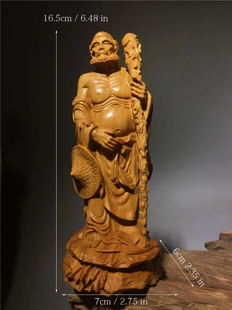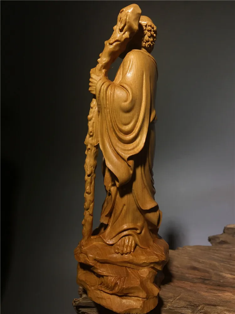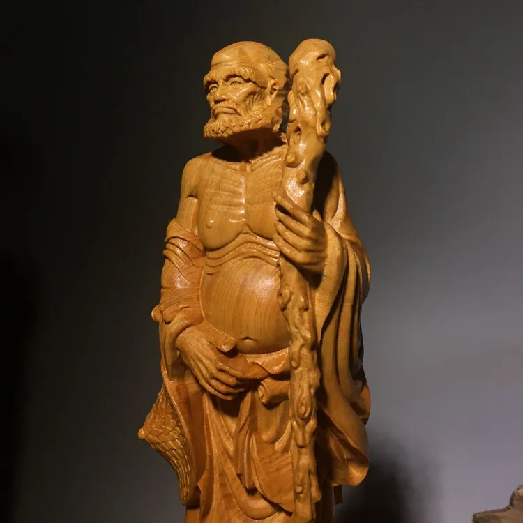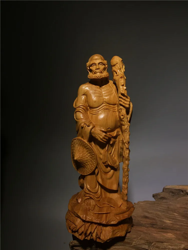 Chinese Thuja Wood Carving Statue of Master Bodhidharm Zen Buddha Statue of Dharma Arhat Home Decor Ornaments
