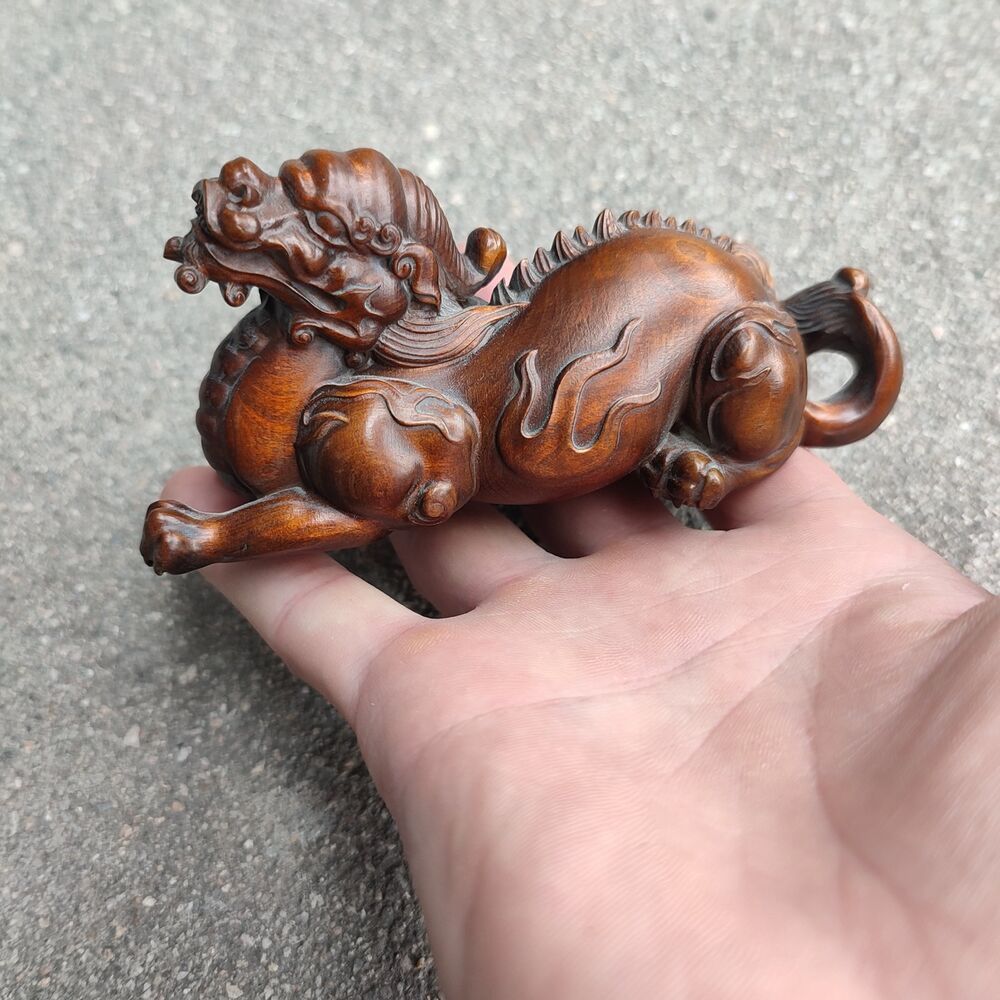 Chinese Unicorn Fabulous Fire Kylin Dragon Statue sculpture Boxwood Carving Gift