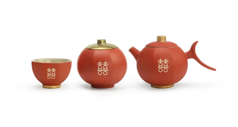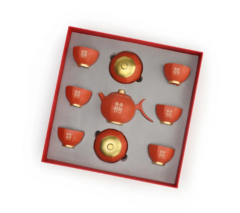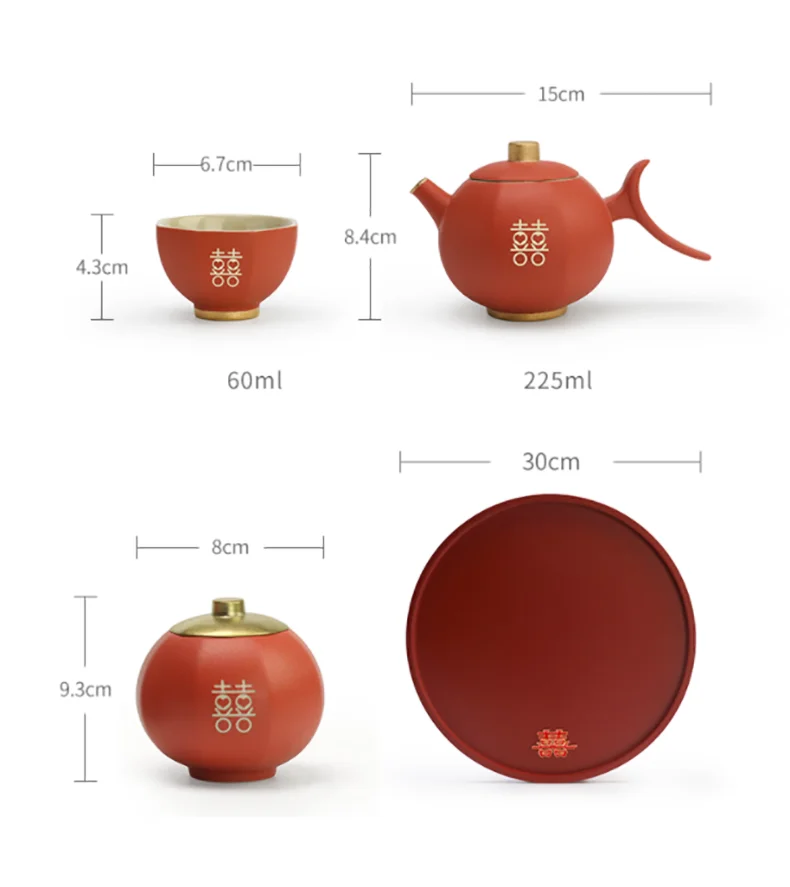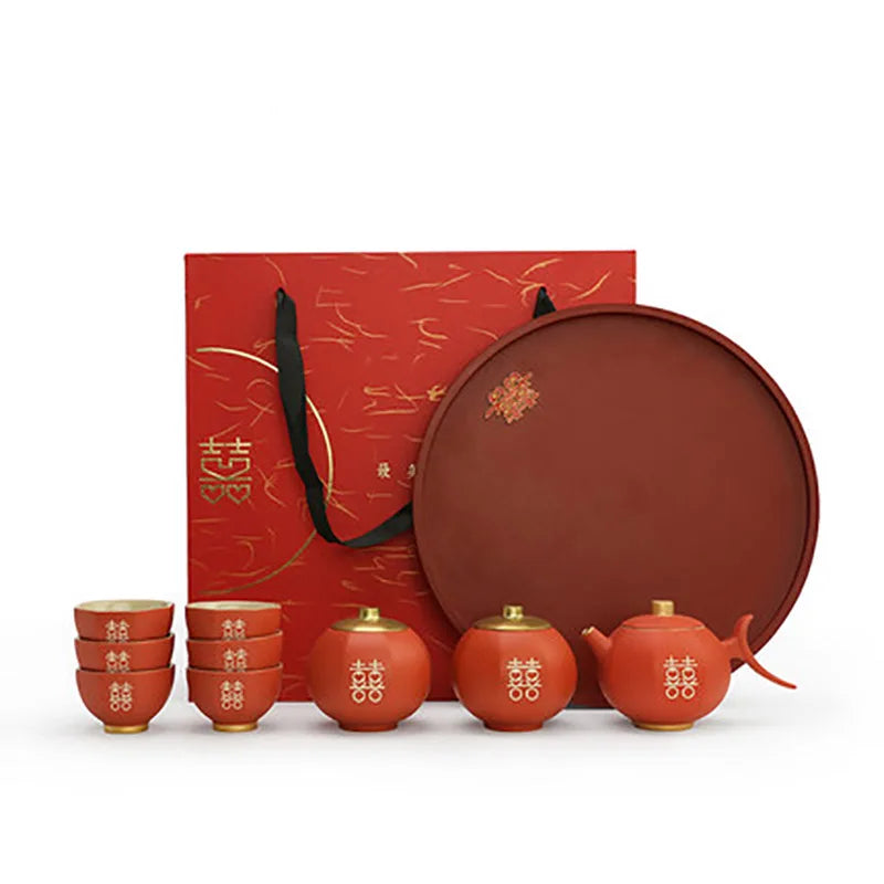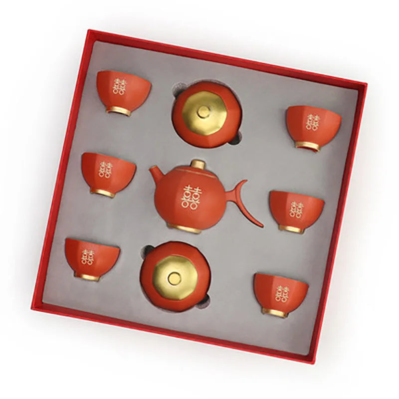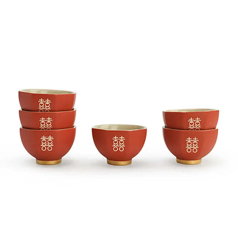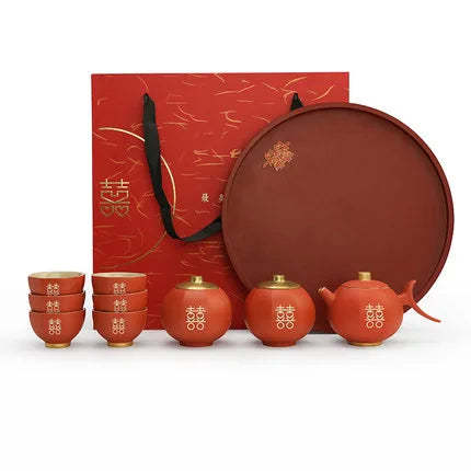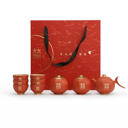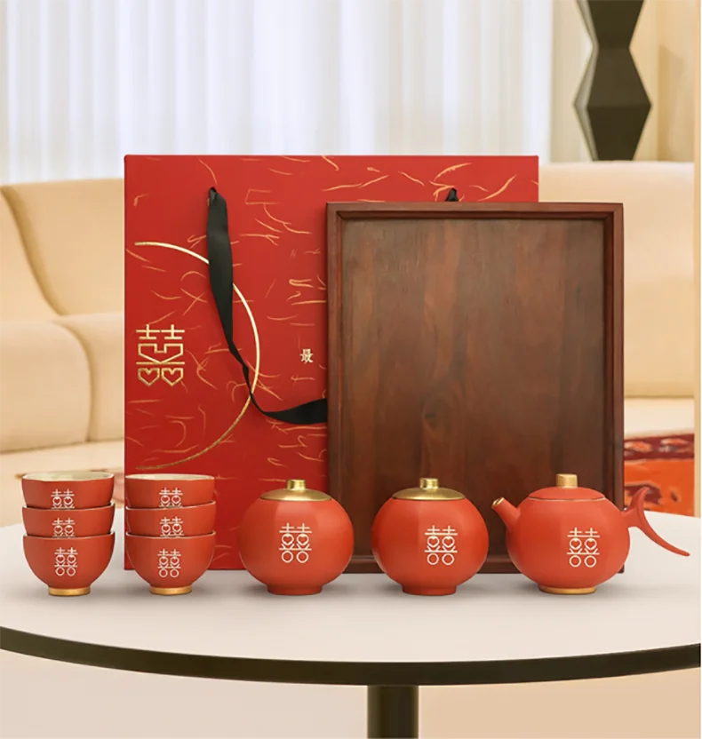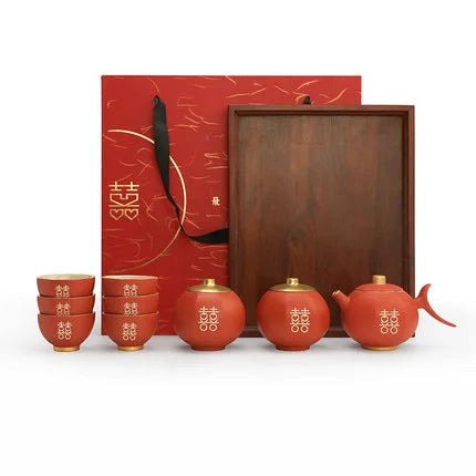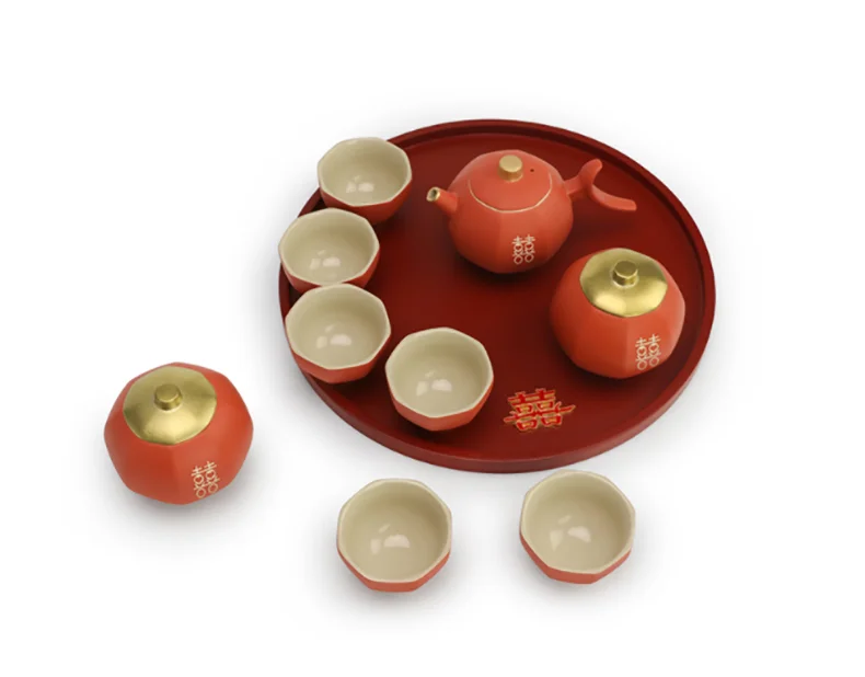 Chinese Wedding Teapot Teacup Tea Pot Cup Bowl Set Ceramic Teaware Creative Customized Bride Gift Dowry Marriage Celebration