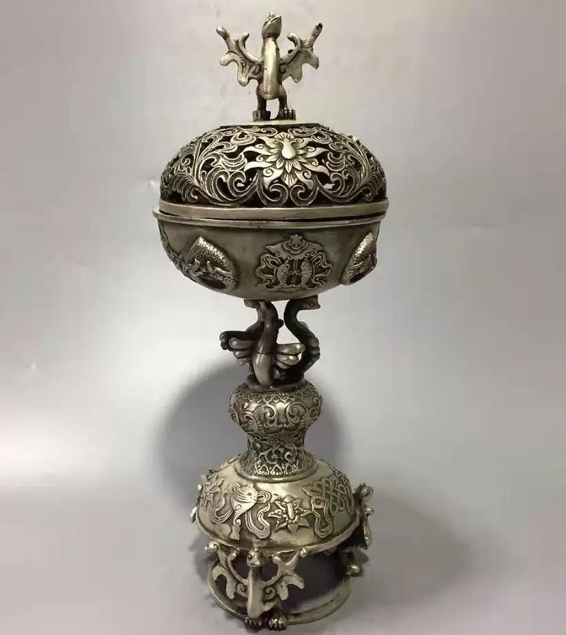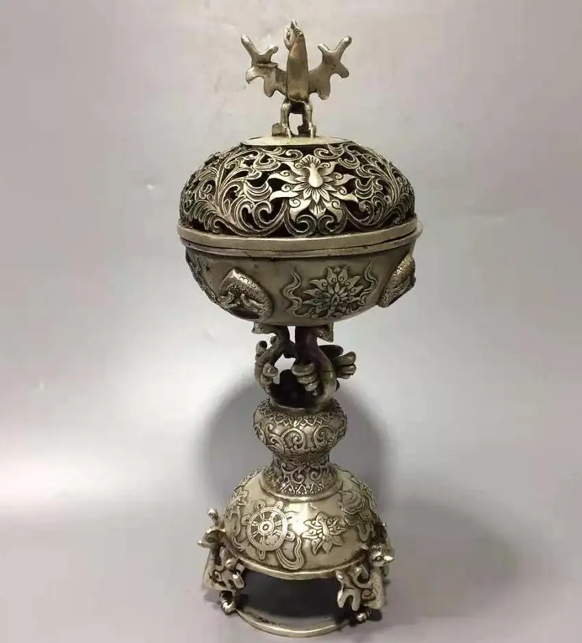 Chinese White copper archaize rosefinch incense furnace crafts statue
