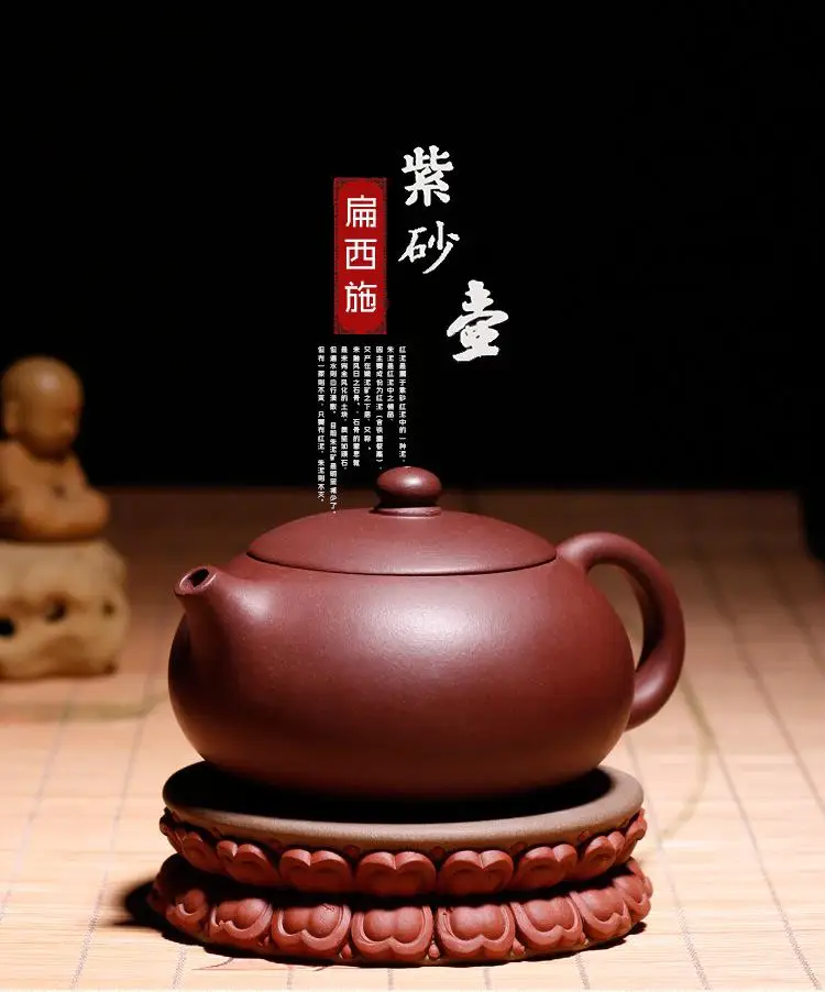 Chinese Yixing Tea Pot Kungfu Hand Made Flat Xishi Pot Qing Cement Mud Tea Set Teapots Author Shao Junya 188 Ball Hole
