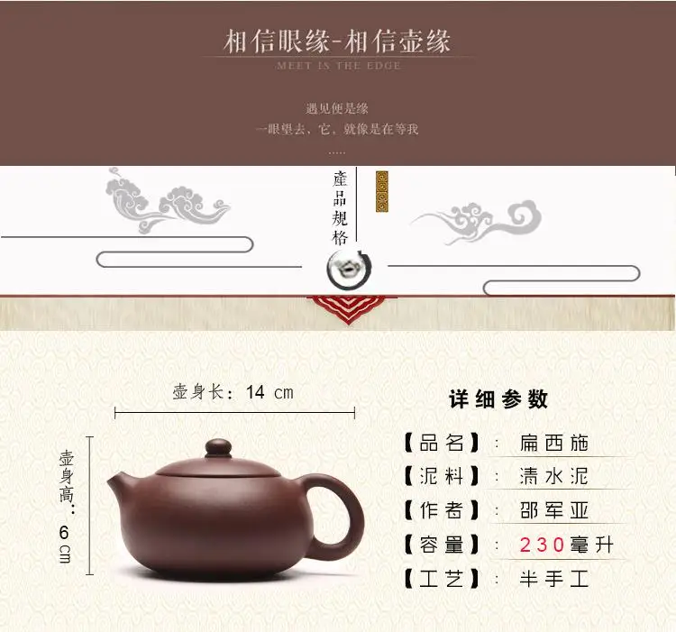 Chinese Yixing  Tea Pot Kungfu Hand made Flat xishi pot Qing Cement mud Tea set teapots Author Shao junya 188 ball hole