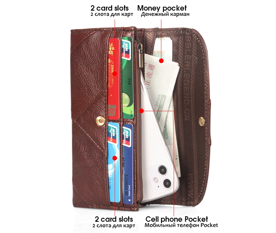 1: Economical and practical: the wallet is of reasonable size, it has many inner compartments, roomy, it can hold iPhone6s, business cards, ID cards, euro money, gold coins, especially for Russian money, keys And other small items. Organize freely and make your travel easier.